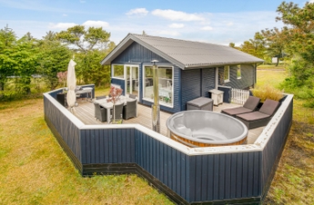 Sommerhuset er beliggende på en skøn naturgrund, hvor de omkringliggende træer og buske skærmer for vinden. Imens I kan slappe af i havemøblerne, kan børnene lege med sandkasse og legehus. En oplevelsesrig dag afsluttes med et lækkert grillmåltid, hvor I kan tænde op i sommerhusets grill for at nyde måltidet på terrassen ? samme med et køligt glas vin.