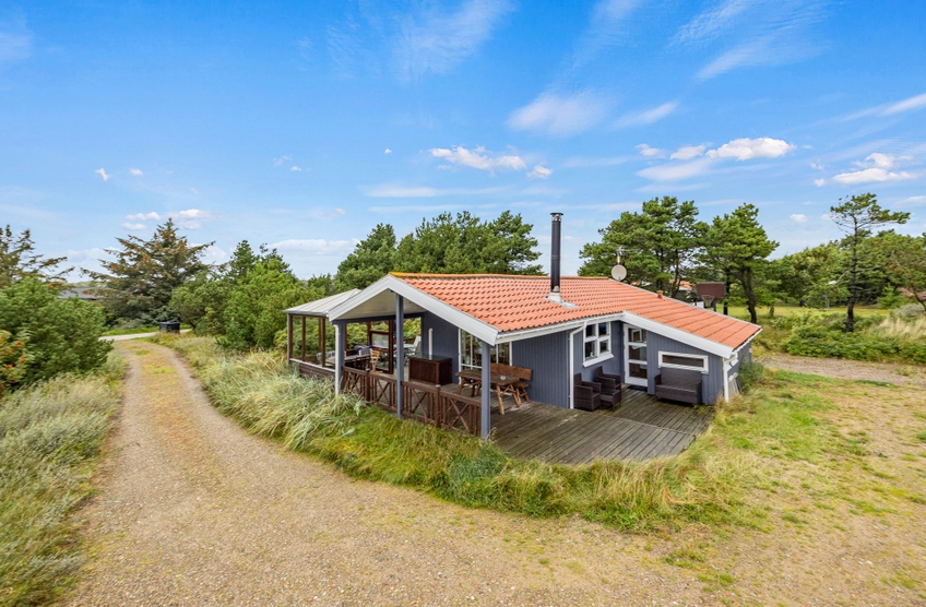 Sommerhuset er beliggende i Henne Strand, og dermed blot 800 meter fra den smukke sandstrand ved Vestkysten. Her er rig mulighed for at nyde naturen, gå eller cykle lange gåture og koble af fra den travle hverdag. Selve byen byder på charmerende butikker, hyggelige caféer og restauranter, hvor I kan smage på lækre lokale retter.