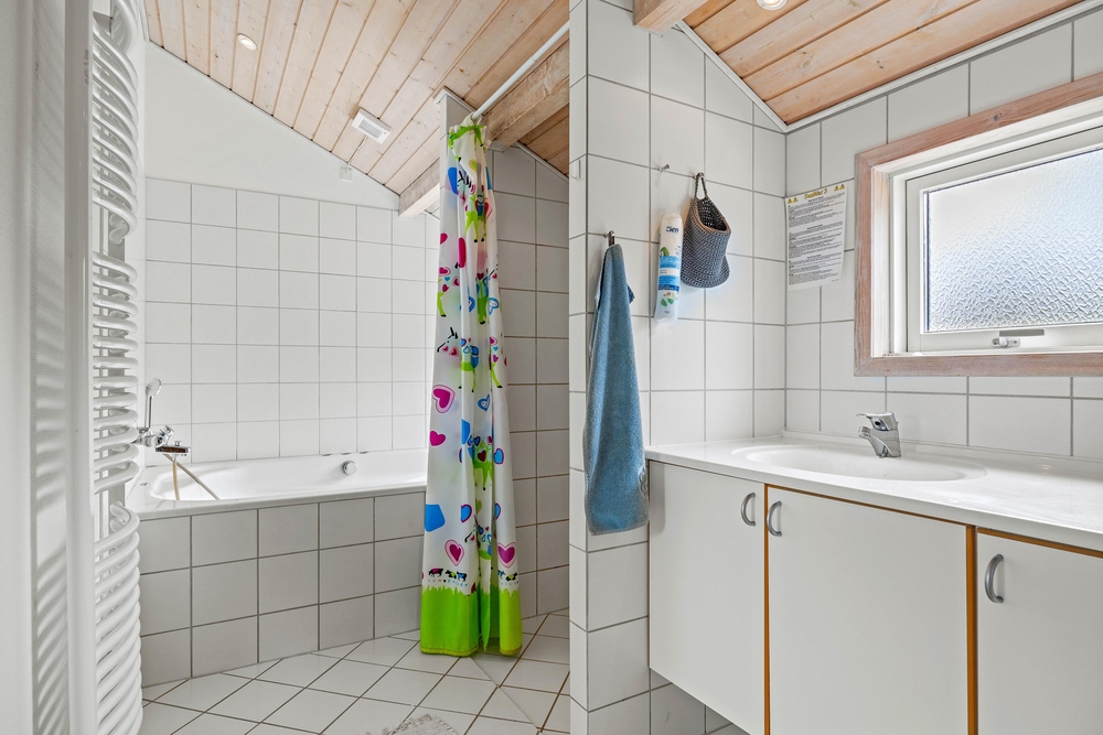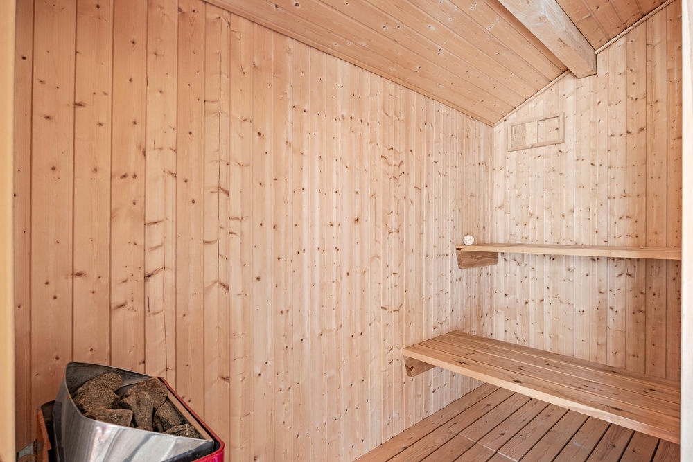 I badeværelset med gulvvarme er en tømmespa og adgang til sauna. Her kan I arrangere jeres egen lille wellness-aften ? giv jer bare god tid, der er også gæstetoilet tilgængeligt så alle kan have det bekvemt i sommerhuset.