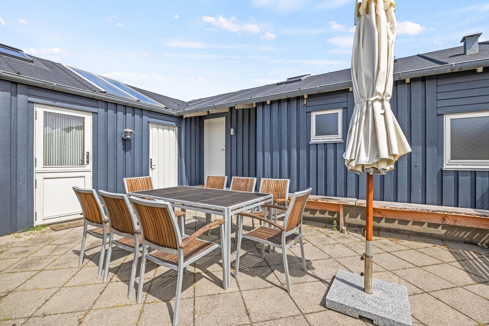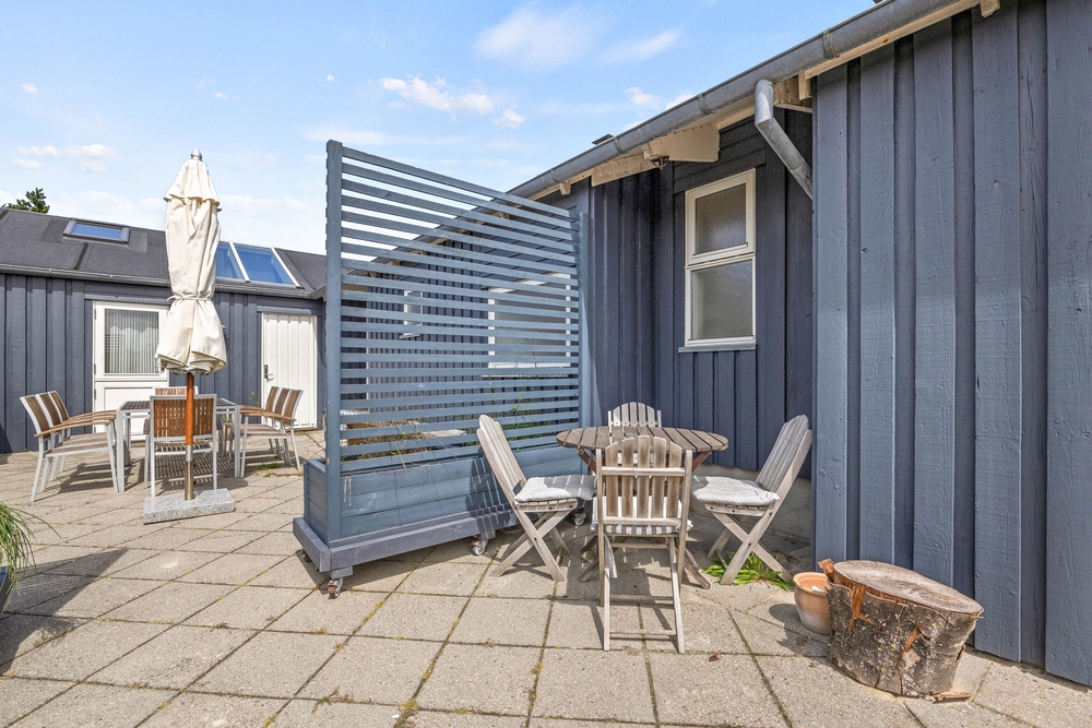 På den afskærmede terrasse kan I solbade i havemøblerne eller trække jer ind i skyggen med en kølig drink. Børnene kan gå på opdagelse på den godt 1.500 kvadratmeter store naturgrund eller lege i sandkassen eller gyngen. Tænd op i grillen til aften, og nyd et lækkert grillmåltid sammen imens skyggerne bliver lange.