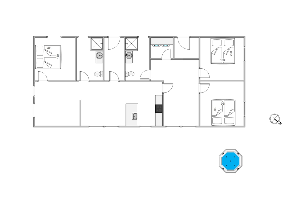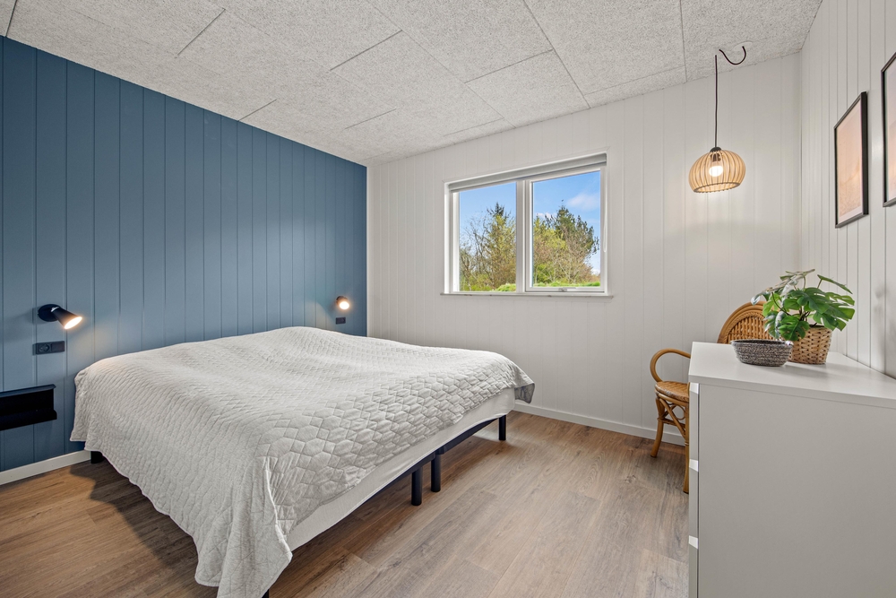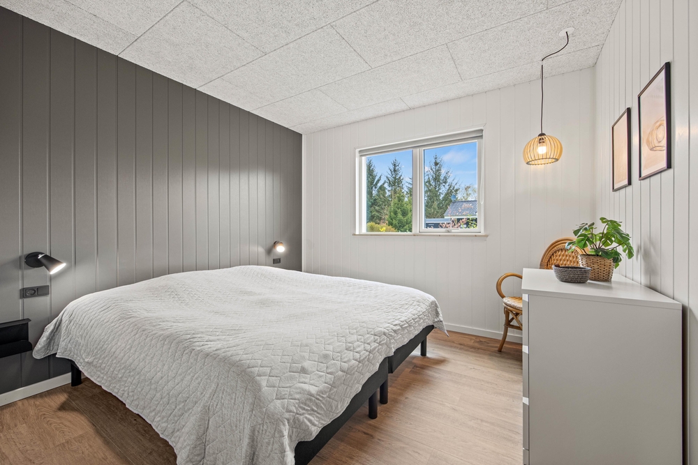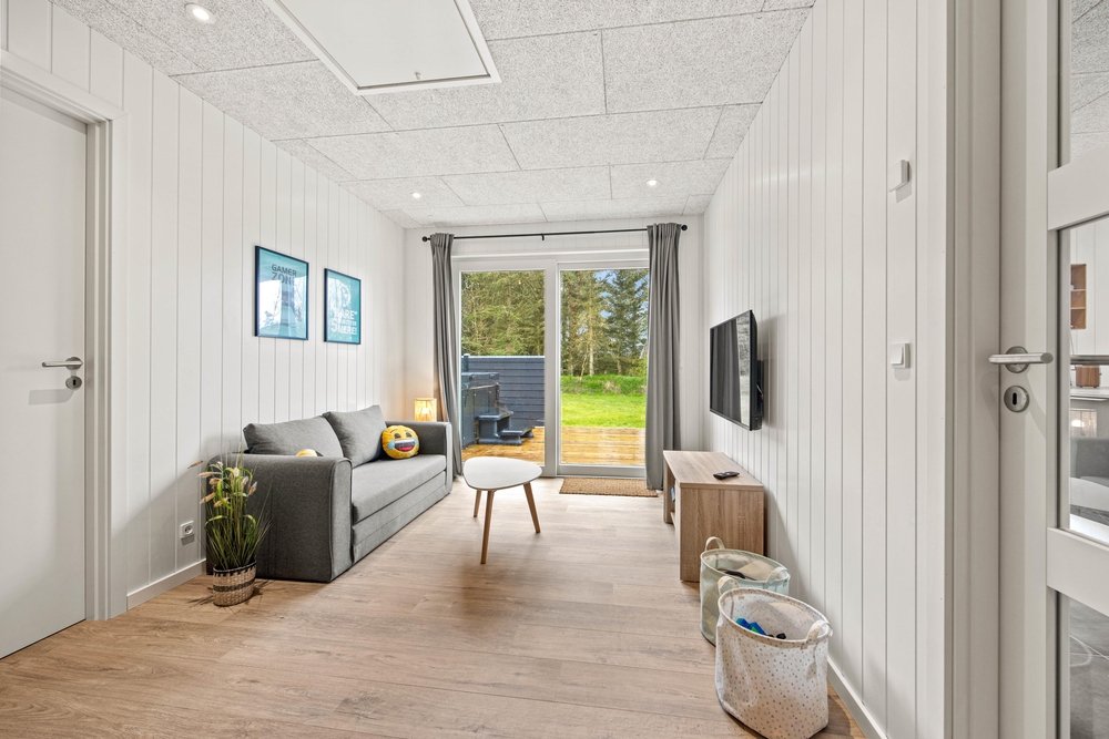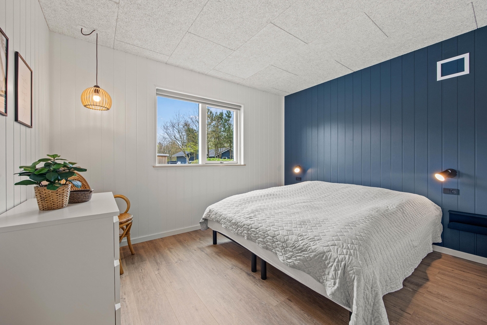 Indretningen i dette feriehus er fantastisk, hvis I rejser med børn eller unge, da alle 117 m2 er rigtig godt udnyttet. I den ene ende af huset finder I det store forældresoveværelse og 1 badeværelse, som vender ud mod stuen, og bagerst i huset er der yderligere 2 gode værelser, endnu et badeværelse og et mindre rum med vaskemaskine og tørretumbler. Aktivitetsrummet byder på en masse muligheder for underholdning med blandet PlayStation, bordtennis, bordfodbold, billard og meget mere.