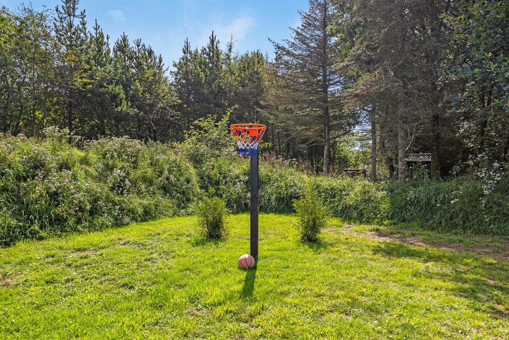 Der er en sandkasse, til børnene og plænen indbyder til hygge og konkurrencer, som bland andet boldspil, stigegolf og kongespil. I haven er der et lille hjørne med bålplads, til alle børns store glæde. Den store terrasse er veludstyret med komfortable havemøbler, liggestole til at slappe af på og en parasol til at skærme jer mod solen. I kan også tilberede jeres aftensmad på gasgrillen og nyde en lækker grillaften sammen.
