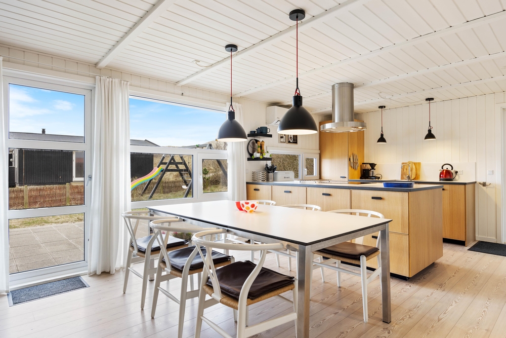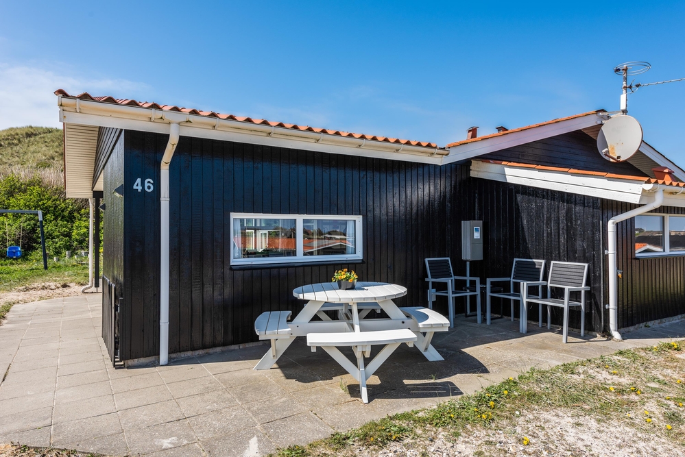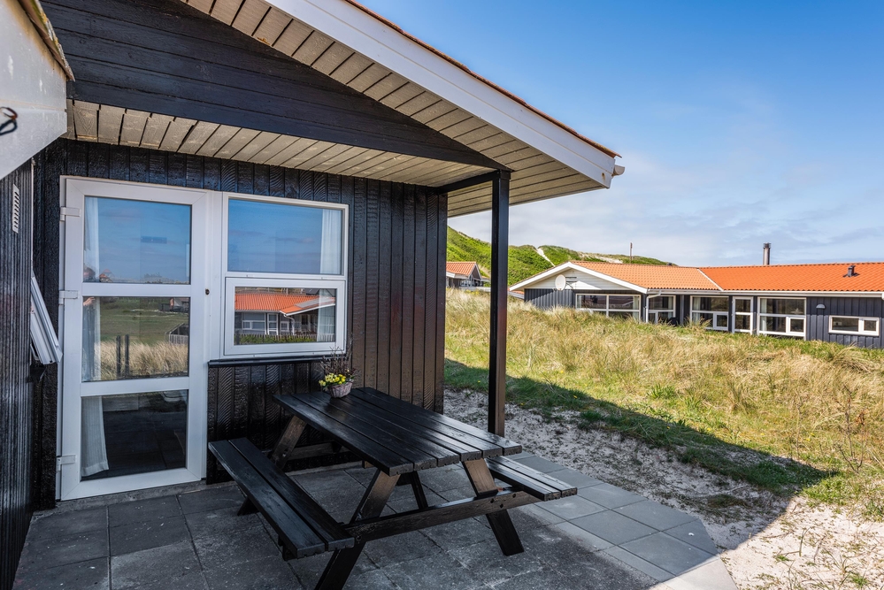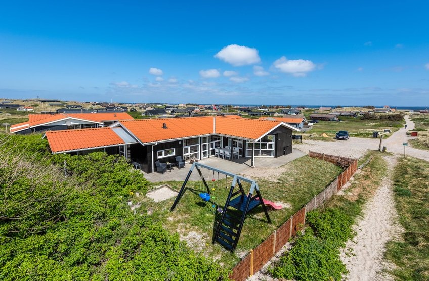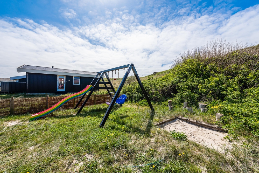 Derudover er feriehuset placeret lige for foden af en klit, så det ligger lidt i læ, og du har en flot udsigt fra terrassen. Og lige ved siden af terrassen står der gynger og en rutschebane, hvor de mindste kan lege, mens du hygger omkring grillen ? helt perfekt til en familieferie i den danske sommer.
