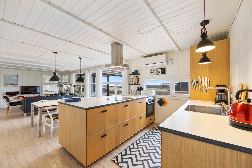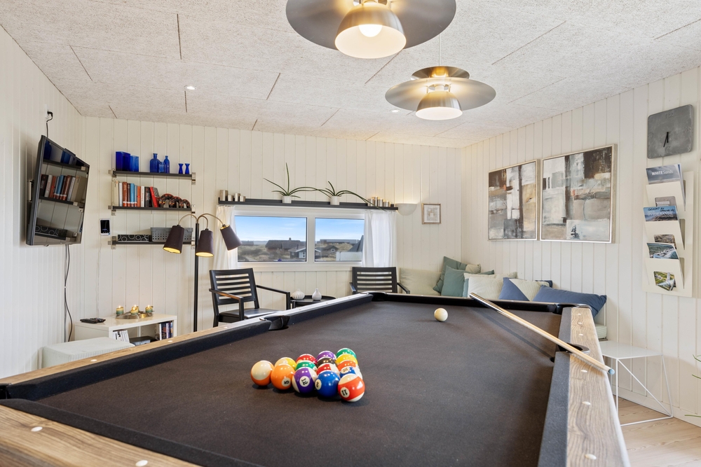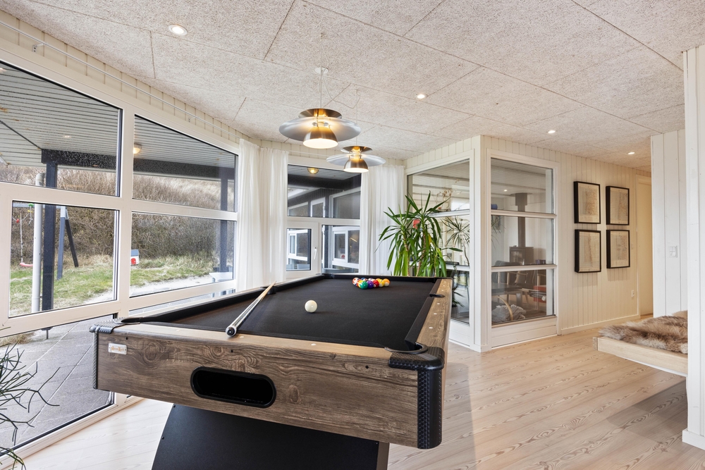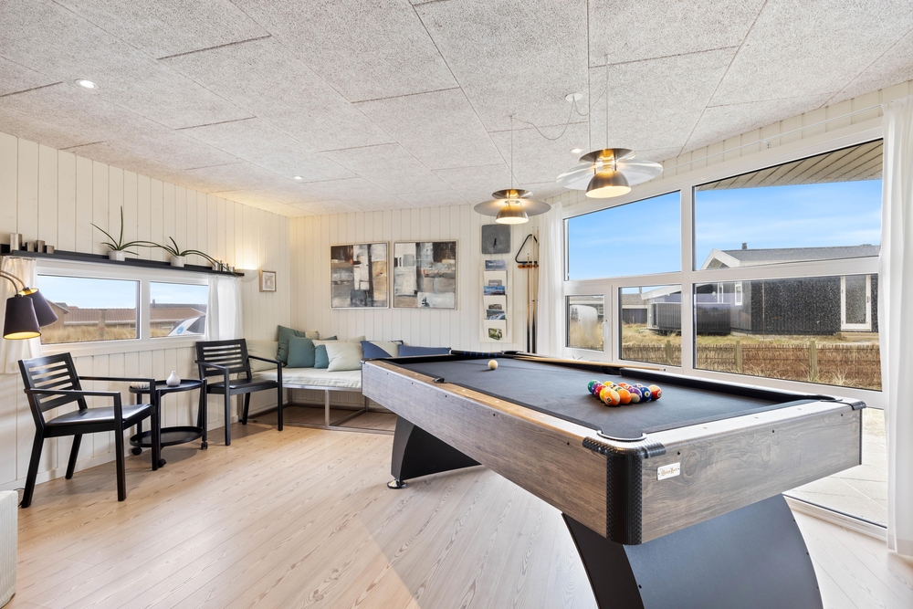 Feriehuset er løbende renoveret og moderniseret samt hyggeligt indrettet, så det emmer af hygge og kvalitetstid med familien. Der er et godt opholdsrum med et åbent køkken, spiseafdeling og stue, hvor du kan samle familien omkring madlavningen, sjove spil eller en god film. Derudover er der lavet et aktivitetsrum til børn og barnlige sjæle med et lækkert billardbord.