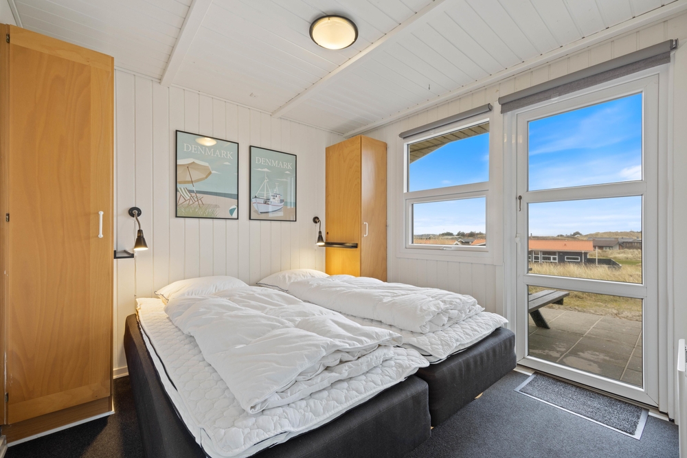 Sommerhusets 8 sovepladser fordeler sig på 4 gode soverum, som alle er indrettet med komfortable dobbeltsenge til en god nats søvn.