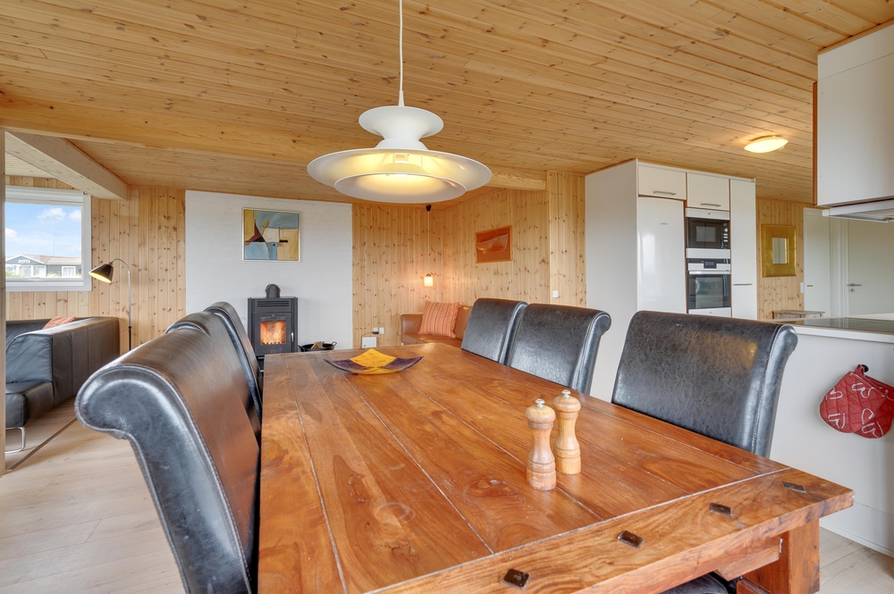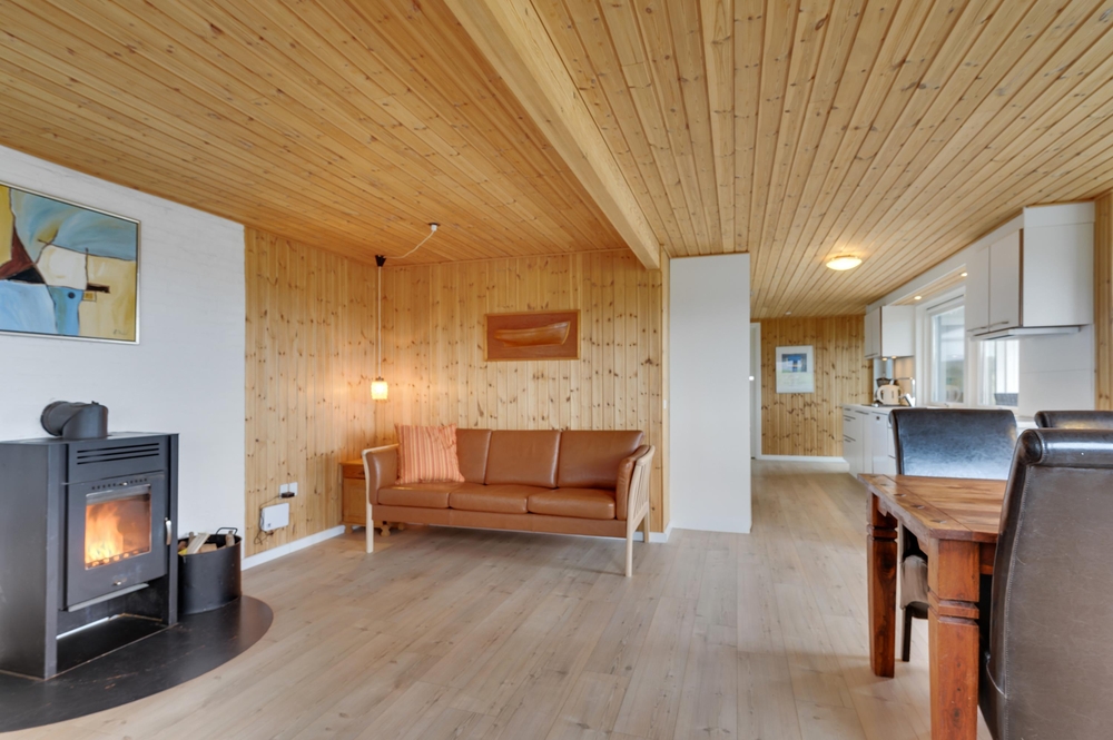 Feriehuset er helt ideelt til dig, der trænger til et pusterum fra hverdagen og en ferie, hvor det er samværet, der er vigtigst. I stuen er er der plads til hygge foran tv?et eller omkring sjove spil ? og her sørger brændeovnen ikke kun for en god varme, men også en hyggelig stemning.
