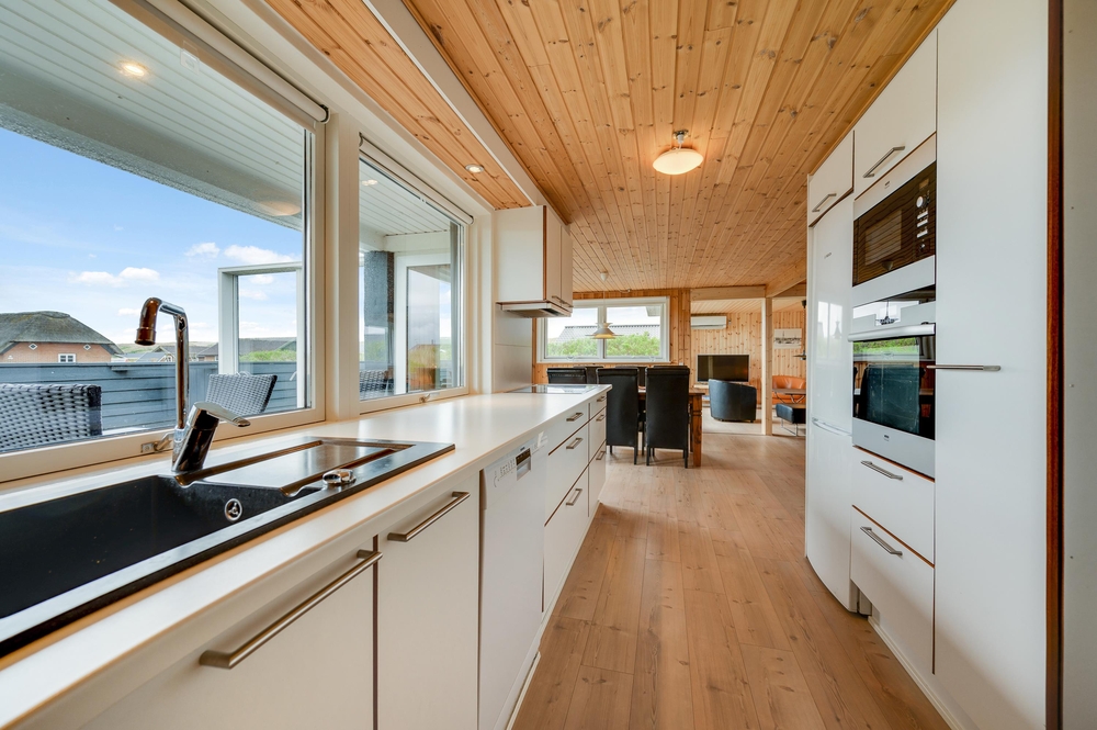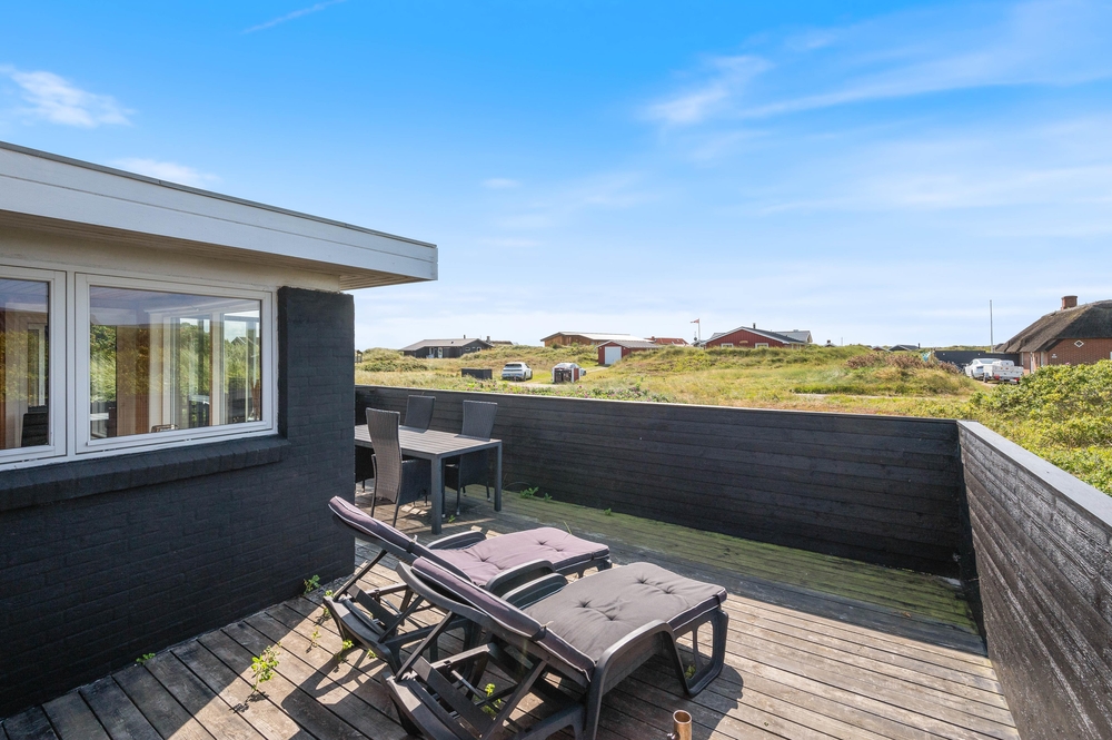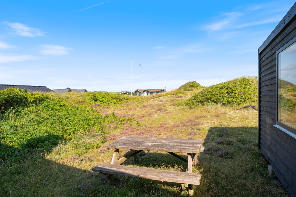 Feriehuset er personligt indrettet, så den traditionelle feriehusstemning stadig kan mærkes. Her kan du tilbringe de med lange sommerdage på terrassen mens børnene leger. Og når det er rigtig varmt, kan du gå en tur til stranden eller køre til Hvide Sande og nyde en is på havnen.