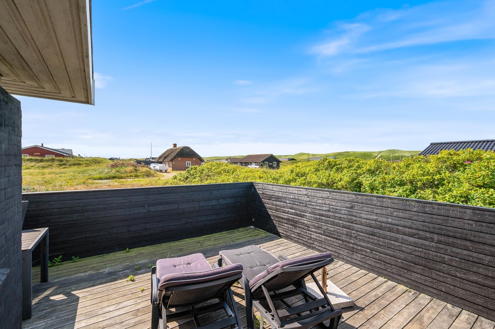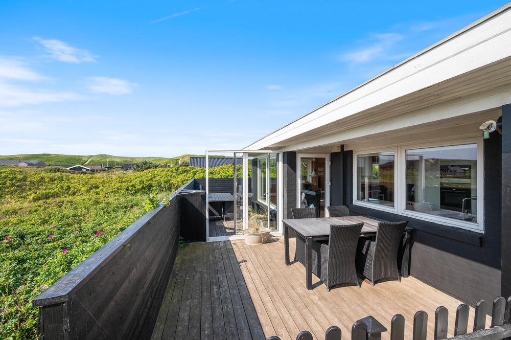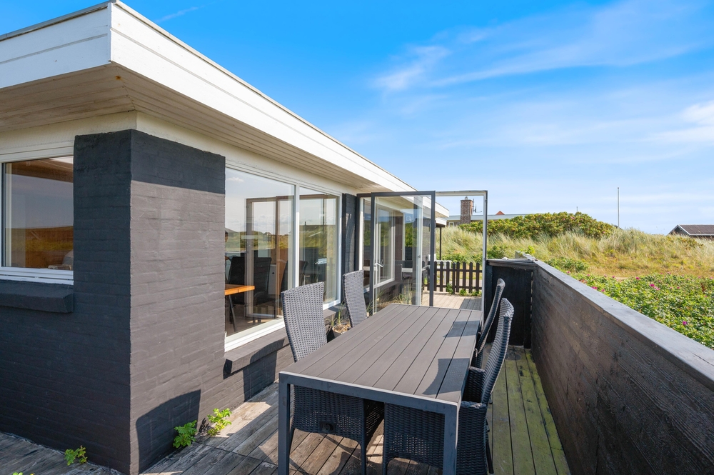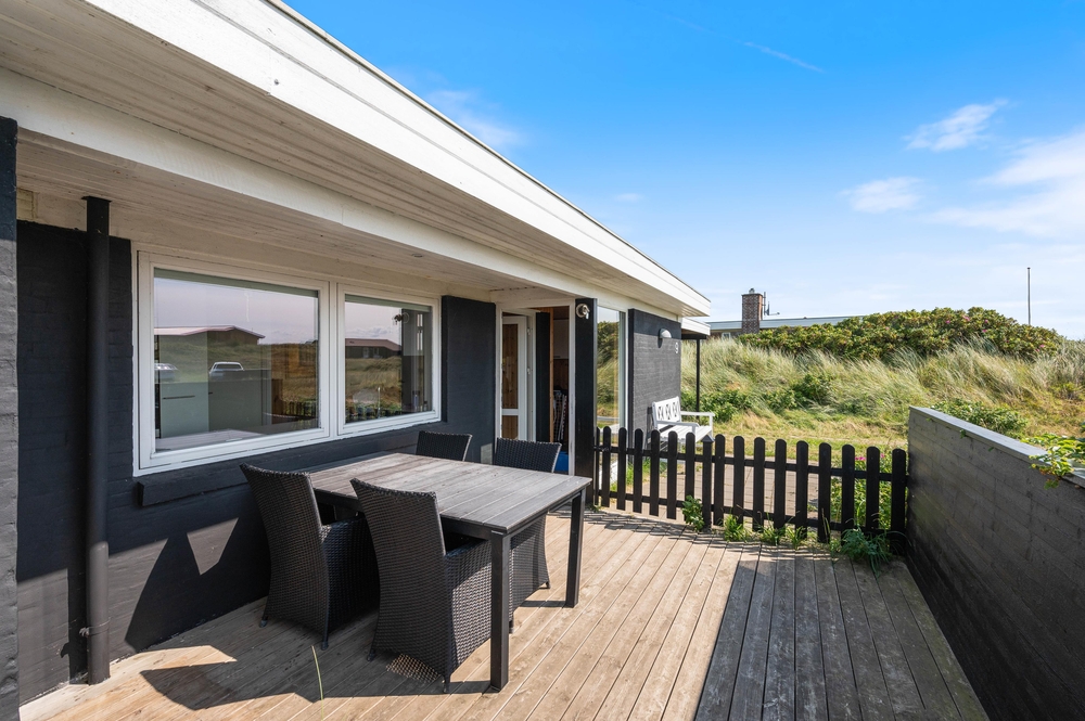 Feriehuset ligger kun 250 meter fra Vesterhavet. Her indbyder den gode sandstrand til lange gåture langs vandet ? uanset årstiden. Og har du lyst til at opleve den hyggelige havneby, Hvide Sande, ligger den heller ikke langt derfra.