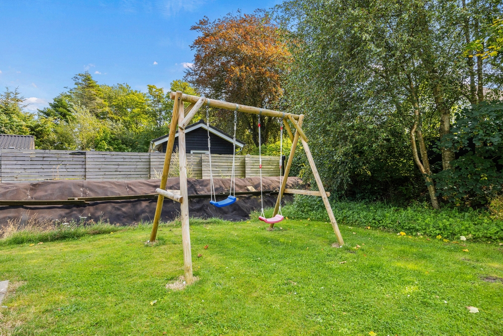Her er der plads til både de aktive og til de, der bare vil læne sig tilbage og slappe af. Den store græsplæne sørger for masser af underholdning til dem, der gerne vil tage et spil fodbold, mens I andre ser på fra liggestolene.