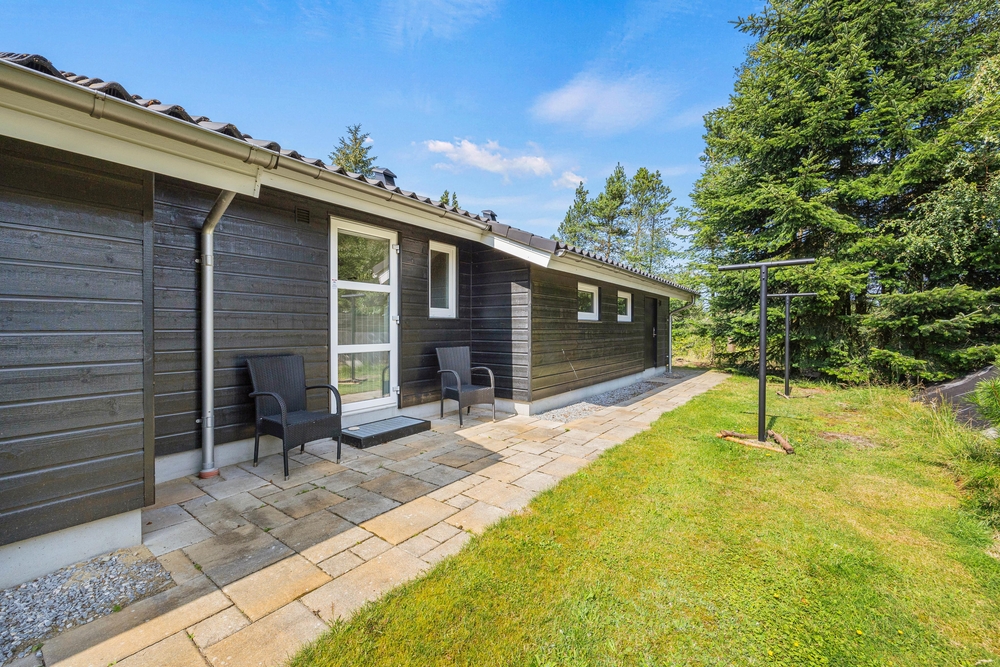 Med Gravensbjergvej 2 A som hjem for ferien får I et rigtig dejligt sommerhus med lækre udendørsforhold. På den store åbne terrasse står havemøbler og liggestole klar, så I kan nyde de dejlige solskinsdage, og på de lune sommeraftener er der lagt op til udendørs grillhygge.