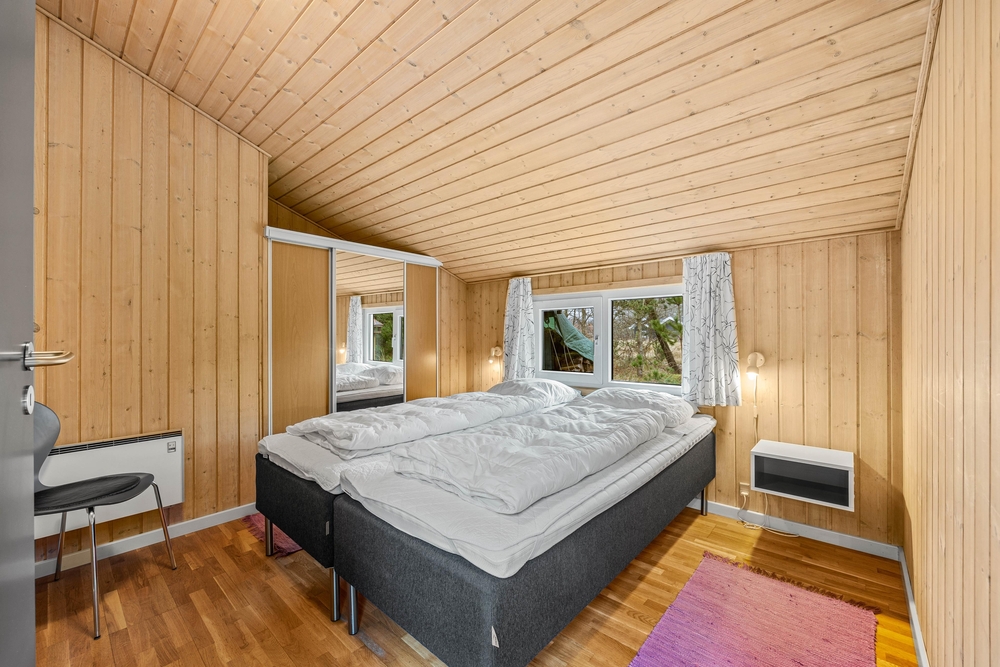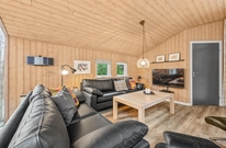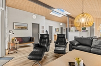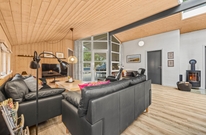 Det store hjerterum i dette dejlige feriehus med det åbne køkken indbyder til fælles feriehygge ved spisebordet eller de gode sofaer. Slap af med en god bog, et spil eller en god kop kaffe foran brændeovnens knitrende flammer efter en god dag. De flotte ovenlysvinduet og vinduespartier giver smukt lysindfald og varmepumpen sørger for et dejligt indeklima.