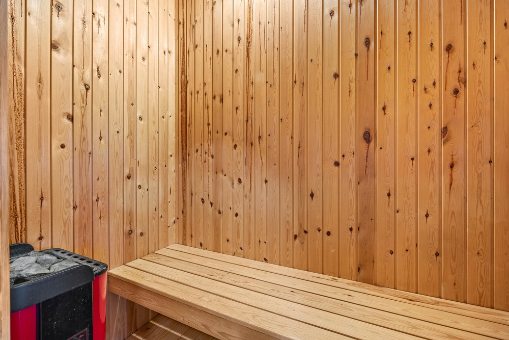 Det store badeværelse har både en 2-personers spa og en sauna, så hvorfor ikke planlægge en wellness-dag, lidt sauna-gus og efterfølgende afslapning i spaen ? start eventuelt med et koldt dyp i Vesterhavet.