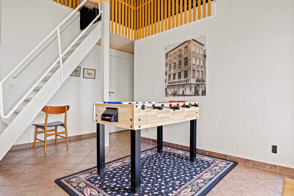 I sommerhuset udgør alrummet hjertet, og her kommer I helt sikkert også til at tilbringe mange dejlige feriestunder. I alrummet kan I blandt andet samles til et spil bordfodbold, lave mad i køkkenet eller se en god film i tv?et. Takket være Chromecasten kan I streame jeres yndlingsfilm.