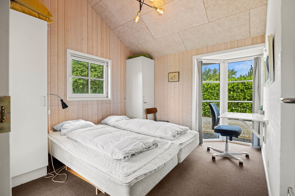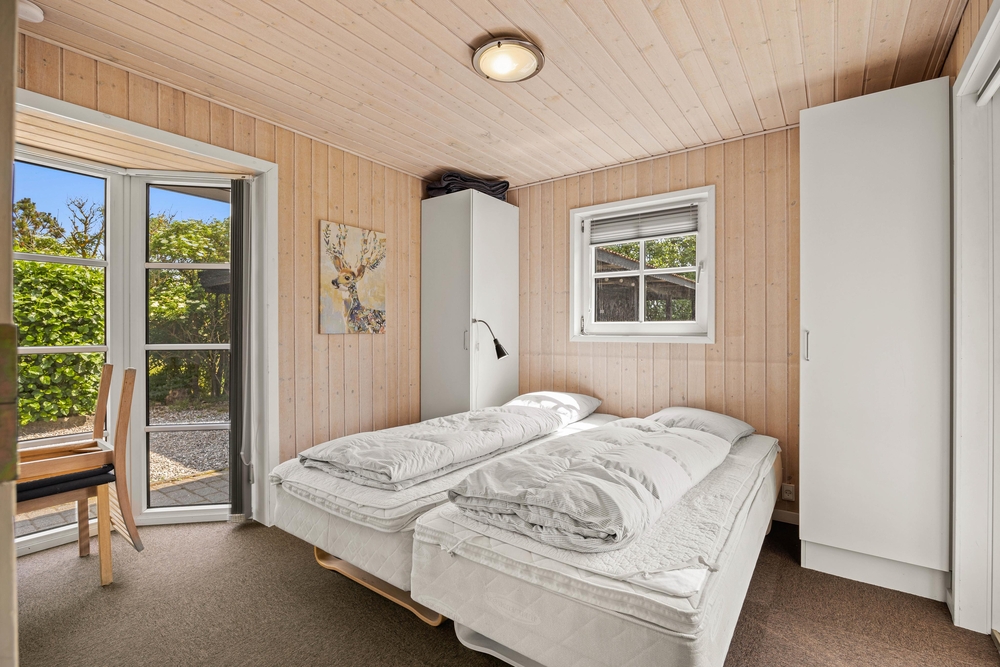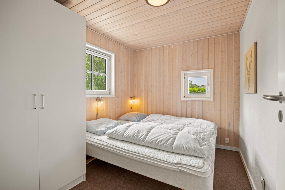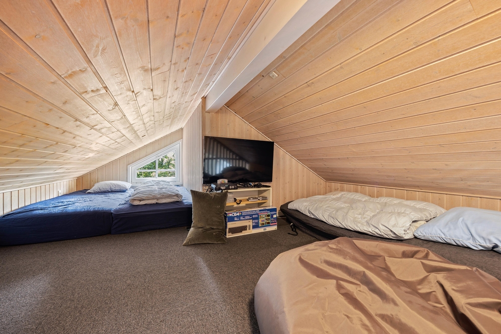 I sommerhuset er der 3 soveværelser, der hver især er indrettet med en dobbeltseng. De resterende 2 sovepladser finder I på hemsen, hvor der også er et tv. Her vil feriens yngste gæster helt sikkert elske at sove.