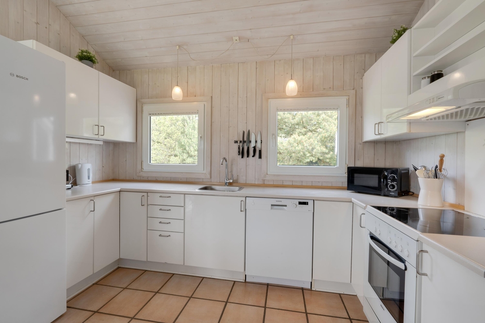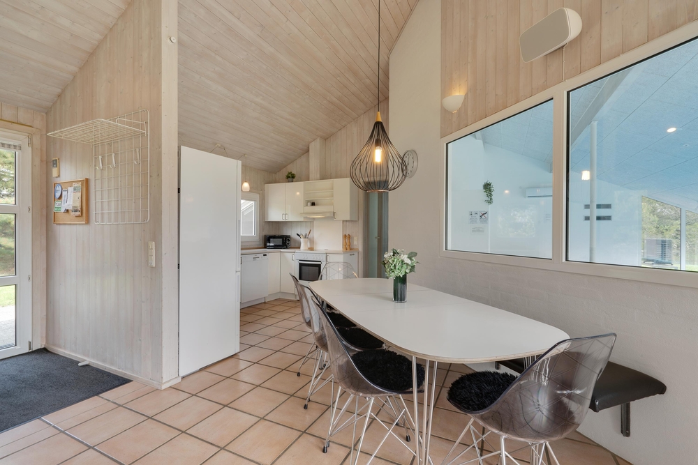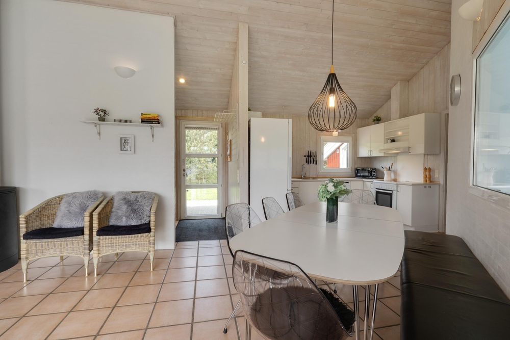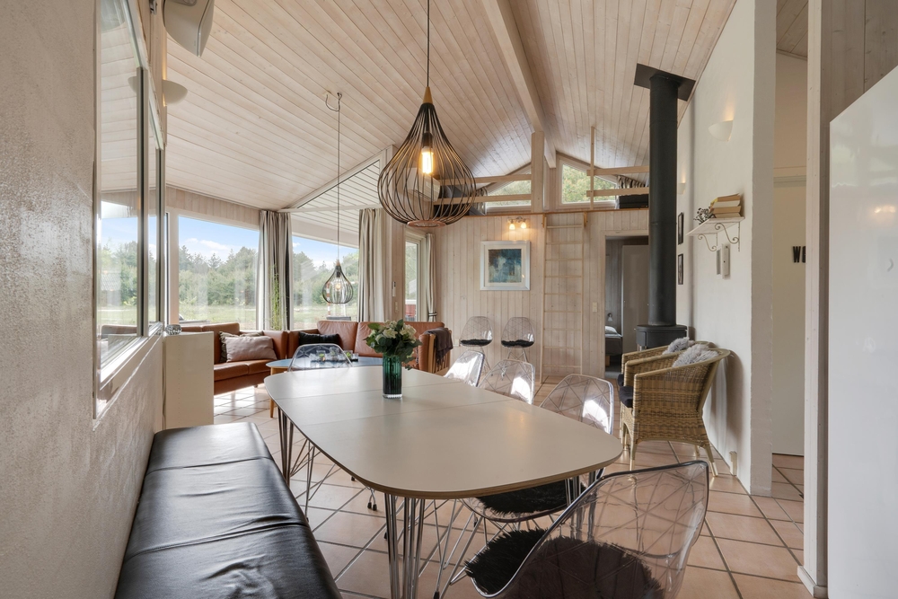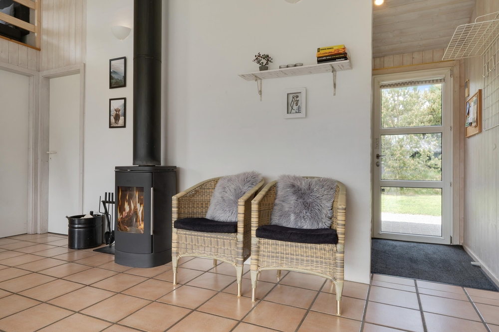 Feriehuset varmes op af en energibesparende varmepumpe, så temperaturen altid er perfekt. Dertil er der også en brændeovn, der skaber en hyggelig atmosfære i de sene aftentimer, når mørket falder på.