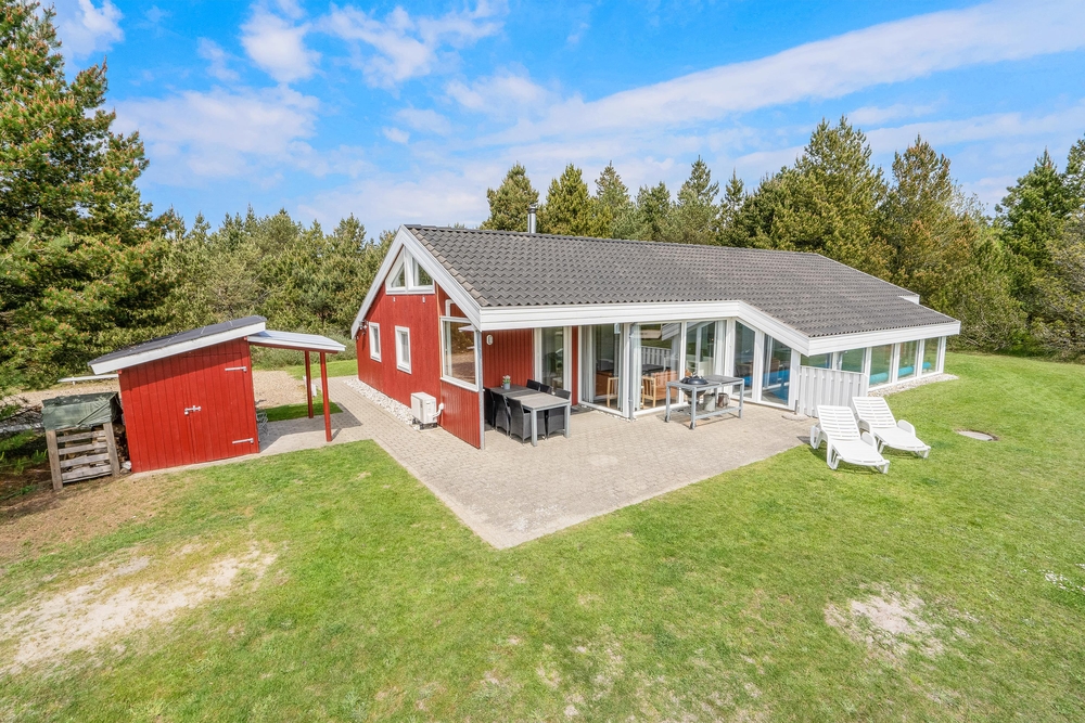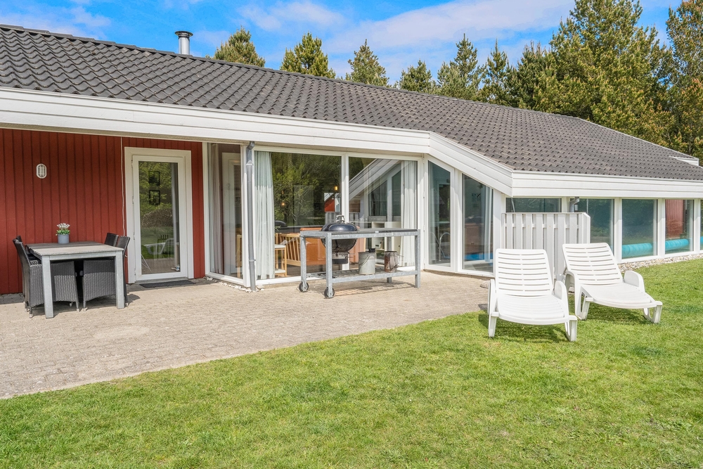 I udkanten af det store sommerhusområde i Houstrup, ikke langt fra et skønt skovområde, ligger dette dejlige poolhus med adressen Guldvangen 14. Sommerhuset på 163 kvadratmeter blev fuldt renoveret i 2021 og delvist renoveret i 2025 med nye gulve, køkken og nyt tag, og er udstyret med både pool, spa og sauna, så her I vil rigtig blive forkælede. Sommerhuset har plads til 10 personer, så medbring gerne den store familie eller vennerne til en uforglemmelig ferie. Hundene er også velkomne her.