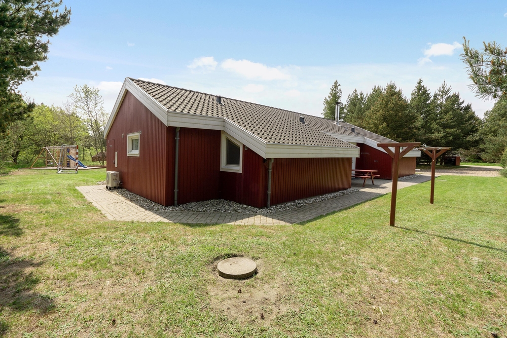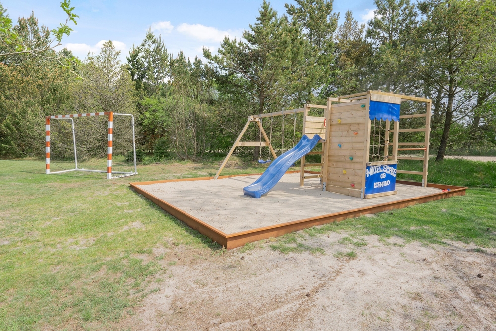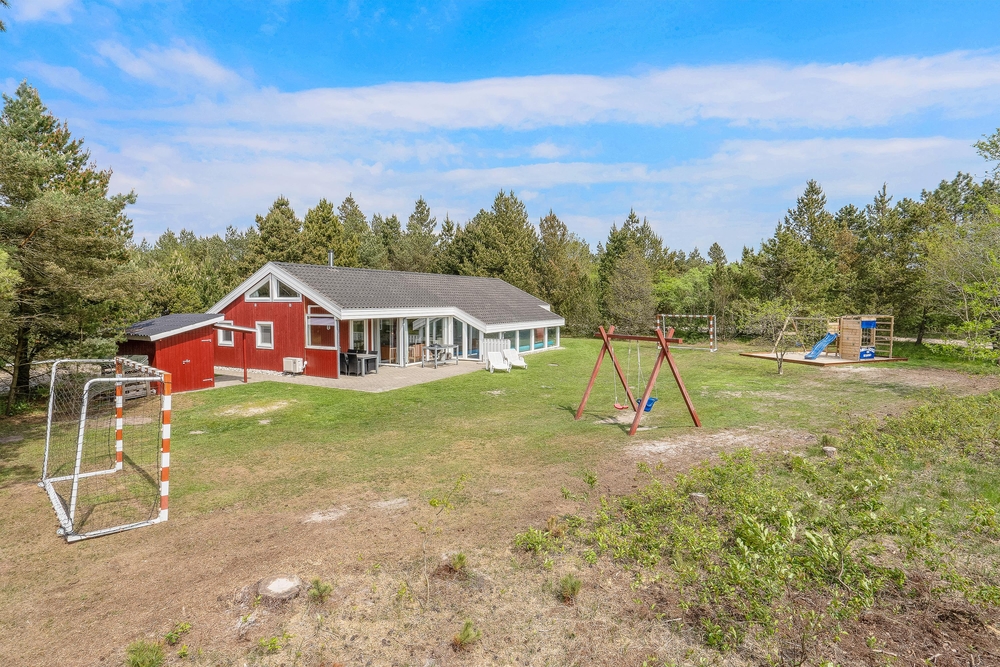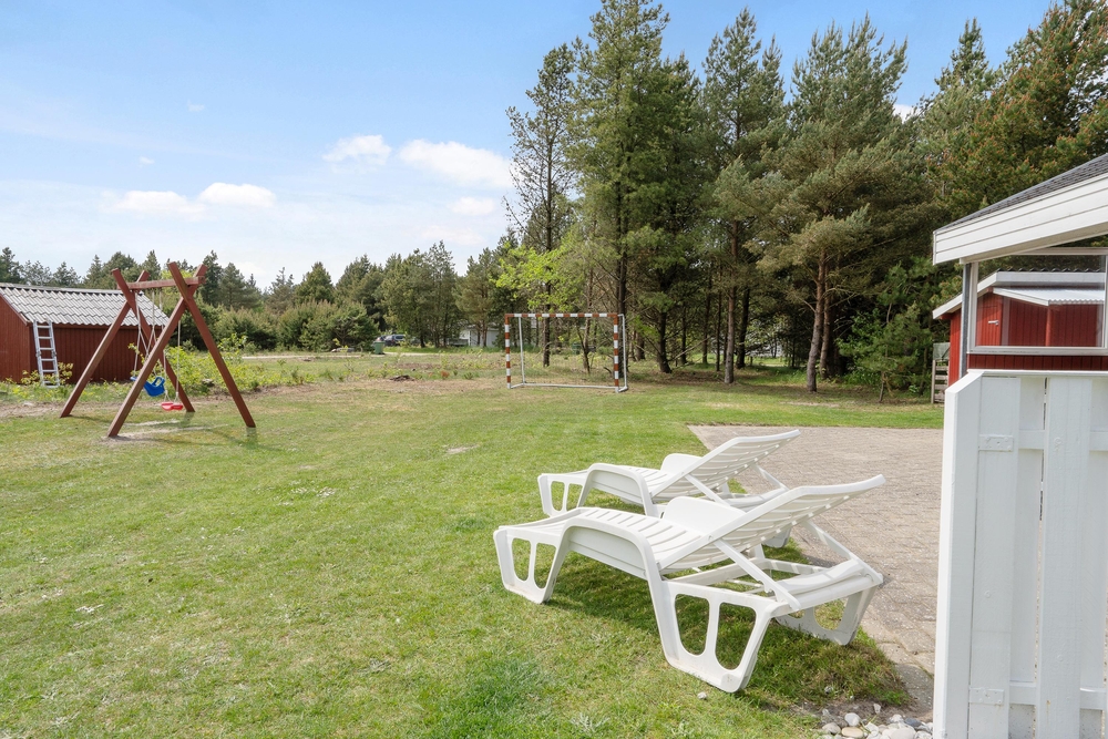 Sommerhuset ligger på en 1687m2 stor grund, hvor der er masser af aktiviteter i form af både sandkasse, gynge, legehus og fodboldmål. Her kan både store og små brænde noget energi af.