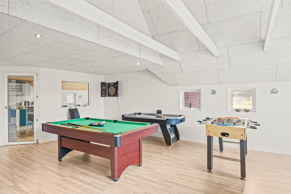 Et af feriehusets highlights er aktivitetsrummet, som byder på spil for både børn og voksne. Her er bordtennis, billard, airhockey, dart og bordfodbold, og I kan derfor få mange sjove timer til at gå med de forskellige aktiviteter og spil. Måske I vil afholde en spændende turnering og finde familiens spillemester?
