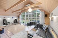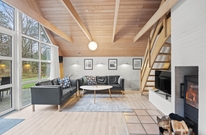 Velkommen til det indbydende og fint indrettede feriehus i Houstrup. Feriehusets samlingsrum er opholdsstuen med et stort vinduesparti, der skaber et godt lysindfald i rummet. Her kan I sætte jer godt til rette i sofaen, se tv eller lade blikket vandre ud i naturen. I sommerhuset er der både danske tv-kanaler og Chromecast. Brændeovnen skaber en særlig hyggelig feriestemning og god atmosfære, og I kan med fordel benytte jer af den energibesparende varmepumpe til at holde en behagelig temperatur.