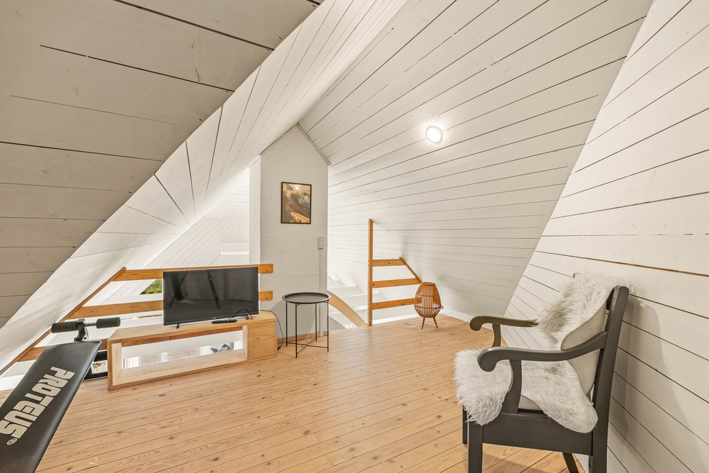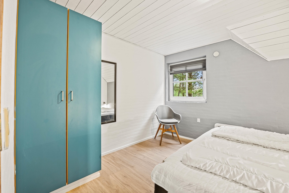 Sommerhuset har fire store soverum, hvoraf tre er udstyret med dobbeltsenge, og et med to enkeltsenge. Børnene vil elske den charmerende hems med to ekstra sovepladser. Med to badeværelser er der altid rigelig kapacitet til hele familien. En vaskemaskine og tørretumbler gør det nemt at holde garderoben ren under hele opholdet.