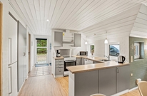 Sommerhuset byder på en åben planløsning, hvor køkkenet har frit udsyn til spisebordet. Denne indretning gør det nemt for jer at holde samtalen i gang og deltage i børnenes aktiviteter, mens I forbereder lækre måltider. En opvaskemaskine sørger for, at I hurtigt og nemt kan komme ud på dagens eventyr.