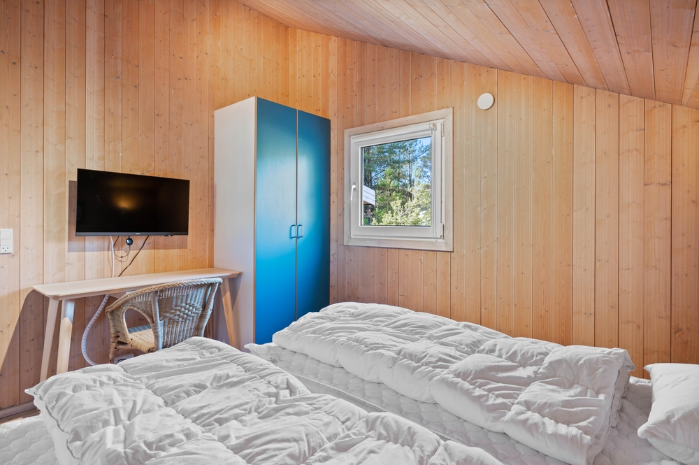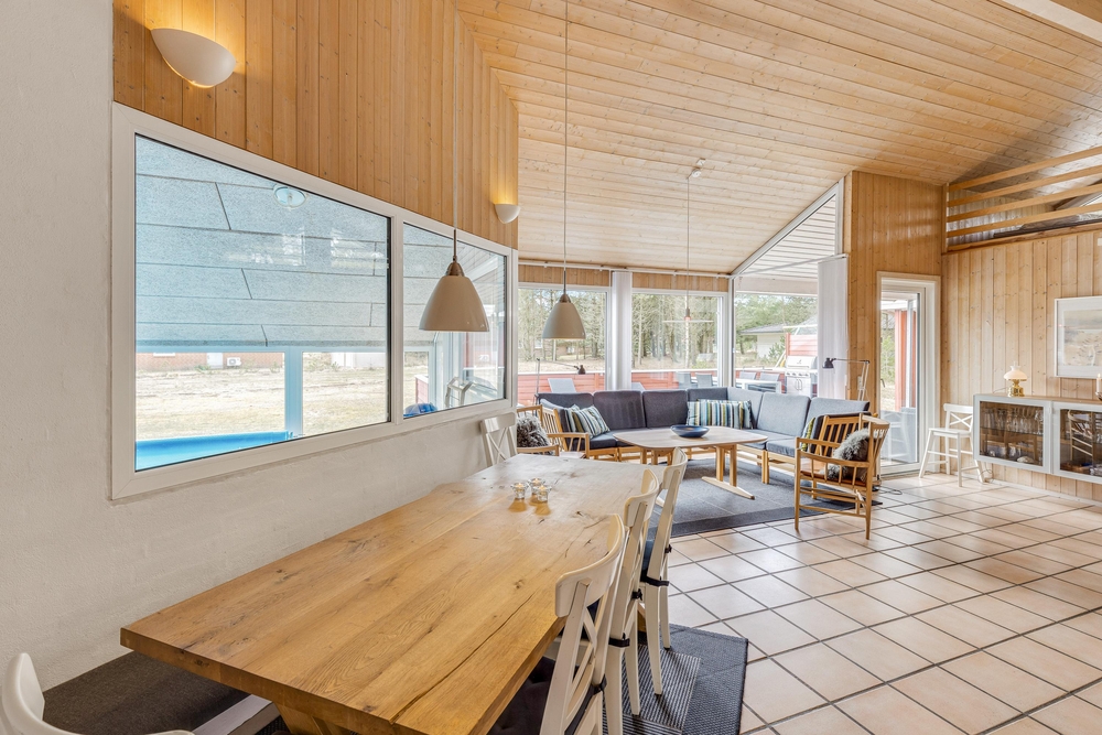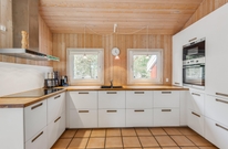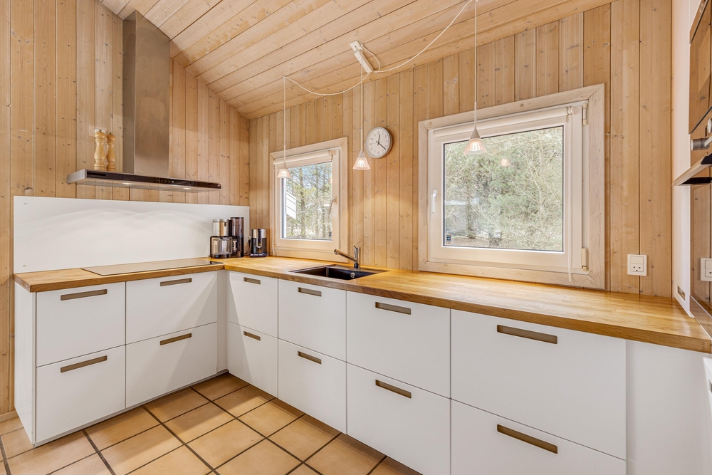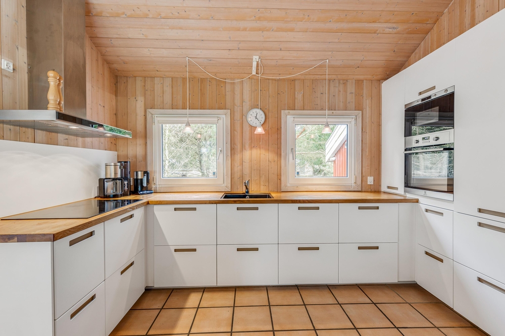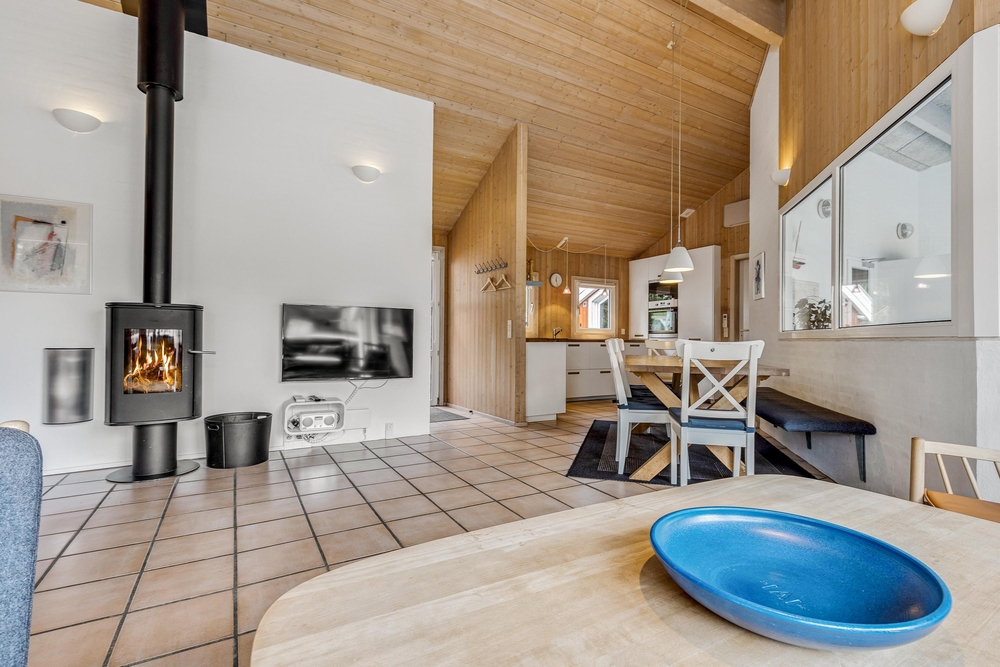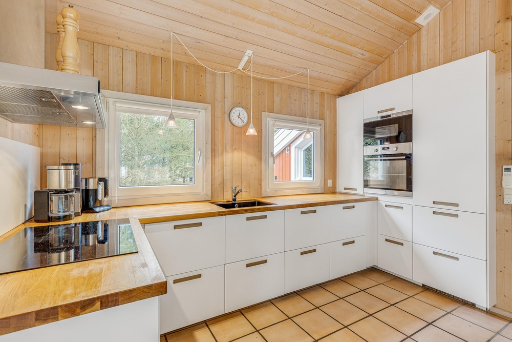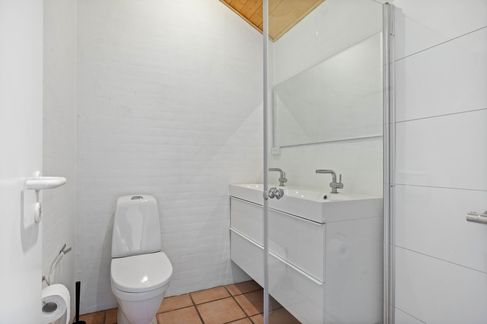 Meget praktisk er der et ekstra badeværelse, så I ikke behøver stå i kø til toilettet, samt det ekstra køleskab i skuret, så der er plads til al den lækre feriemad. Køkkenet er åbnet op ind til spisestuen, så alle kan tage del i madlavningen og nyde hinandens selskab både morgen, middag og aften. Hvis I blot har brug for at slappe af i sofaen, kan sommerhusets Chromecast bruges til at streame jeres favoritter.