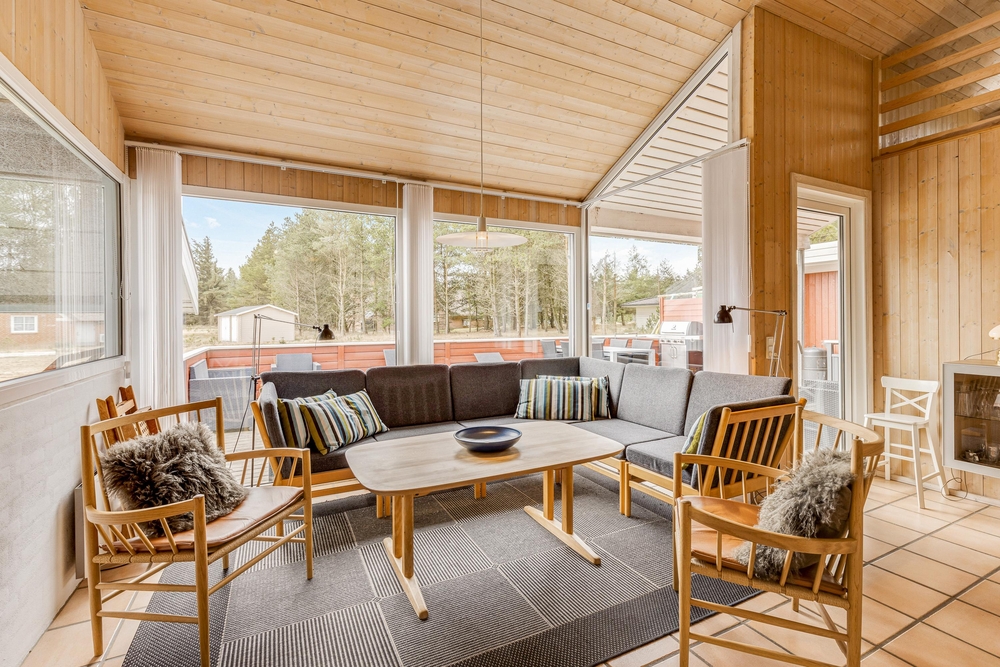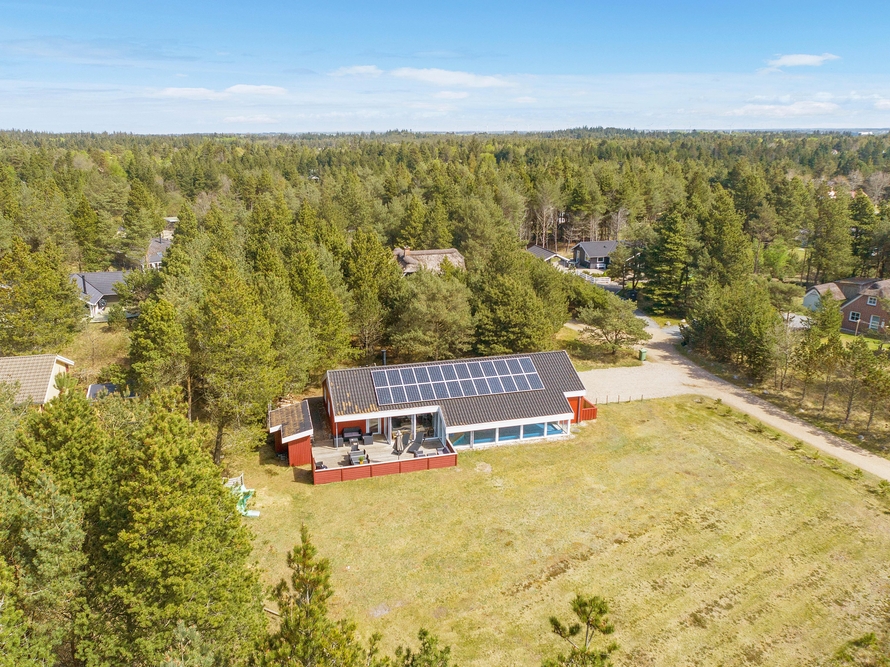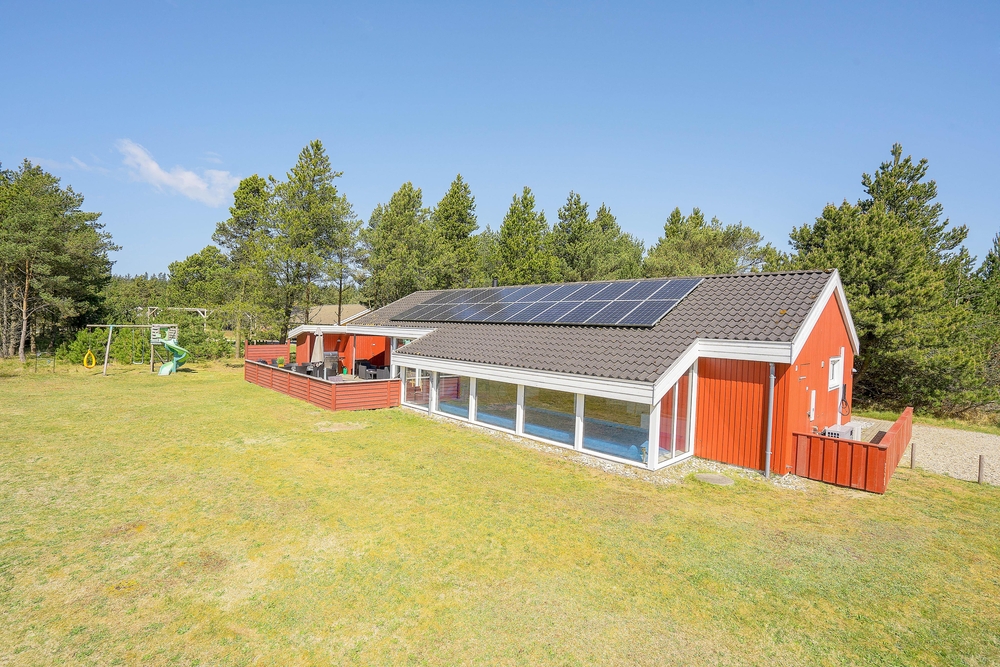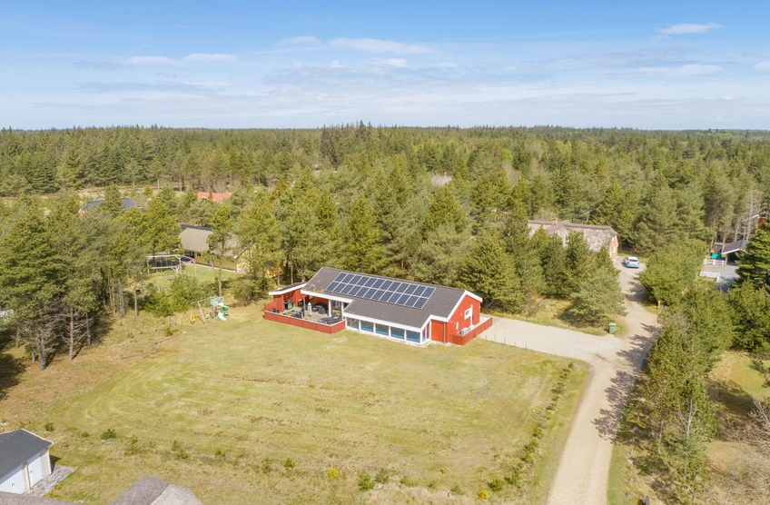 På Guldvangen 46 finder I dette fine poolsommerhus, der ligger rigtig fint omkranset af høje fyrretræer. Sommerhuset har plads til op til 8 personer, hvilket gør det perfekt til store familier. For total afslapning er huset udstyret med både sauna og spabad, og sidst men ikke mindst en swimmingpool ? her kan I holde badeferie alle tider på året. Sommerhuset har også et ladestik type 2 til familiens el-bil på adressen, så I ikke skal til at køre efter dette.