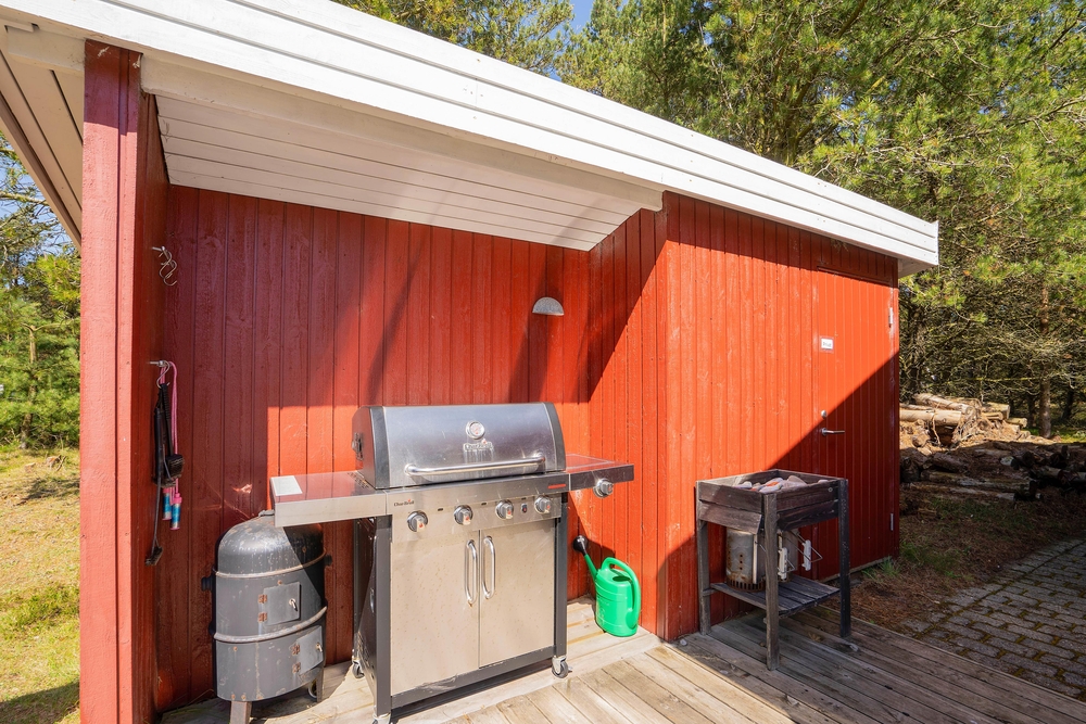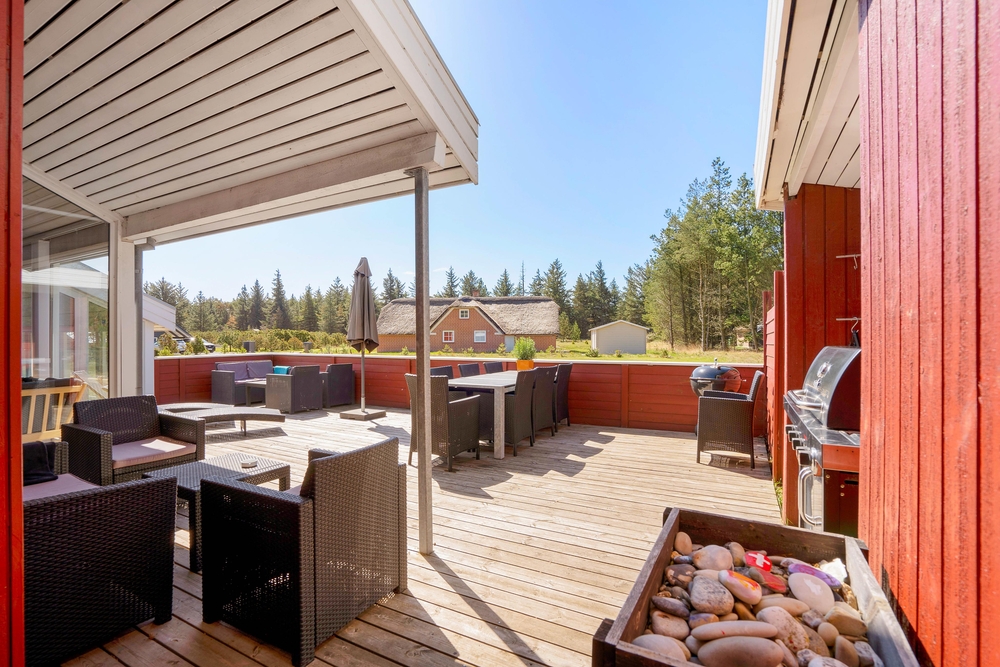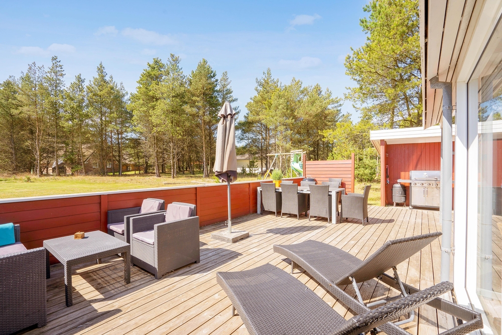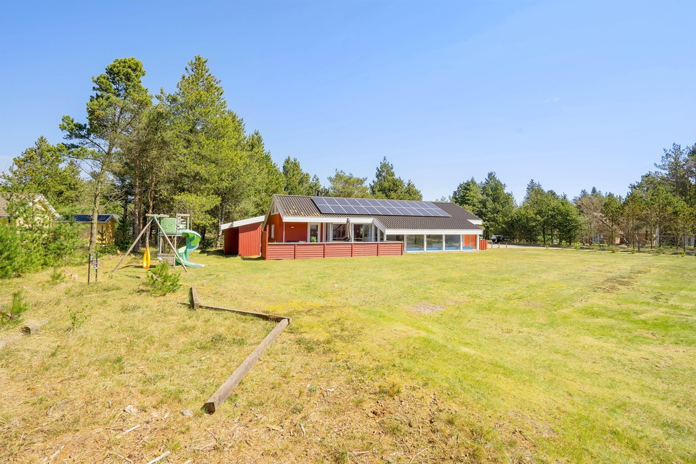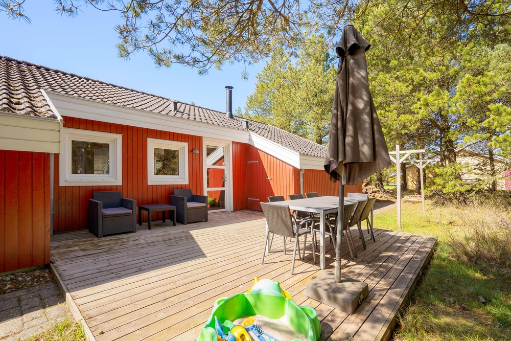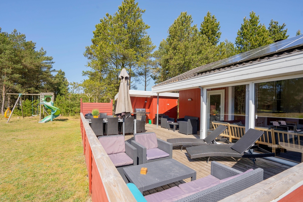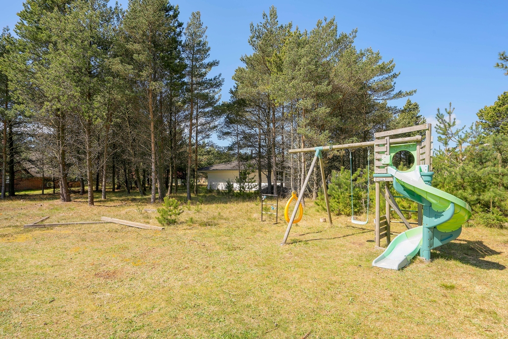 Huset har 2 gode terrasser, så I kan følge med solen hele dagen, og der står havemøbler og grill klar til jer, så snart I ankommer. Terrasserne skaber den perfekte ramme for alt fra morgenkaffen til hyggelige grillaftener med familien. Til børnene er der både gyngestativ, rutsjebane og sandkasse, så der er rig mulighed for leg. De små kan trygt lege på den rummelige grund, mens I nyder en stille stund i skyggen eller solens varme stråler.