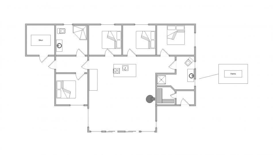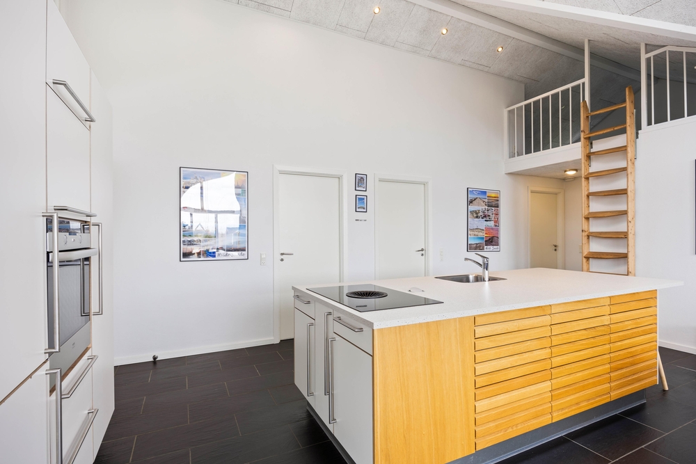 Samlingspunktet for familien er helt klart det store køkken-alrum. Her er dejligt lyst og moderne, og masser af mulighed for at nyde noget kvalitetstid med hinanden. Hvis I også ønsker at skrue endnu mere op for hyggen og varmen, kan I gøre dette ved hjælp af brændeovnen. Tænd op i brændeovnen, sæt jer tilbage, og bare nyd den varme og hygge som den spreder.