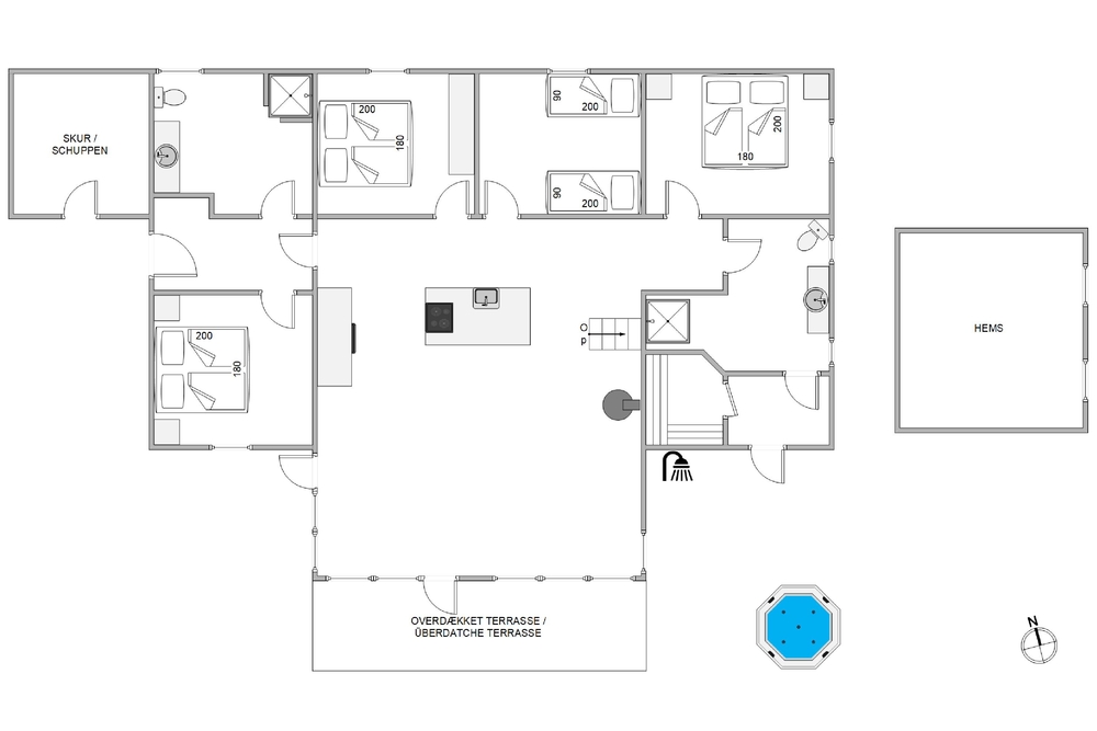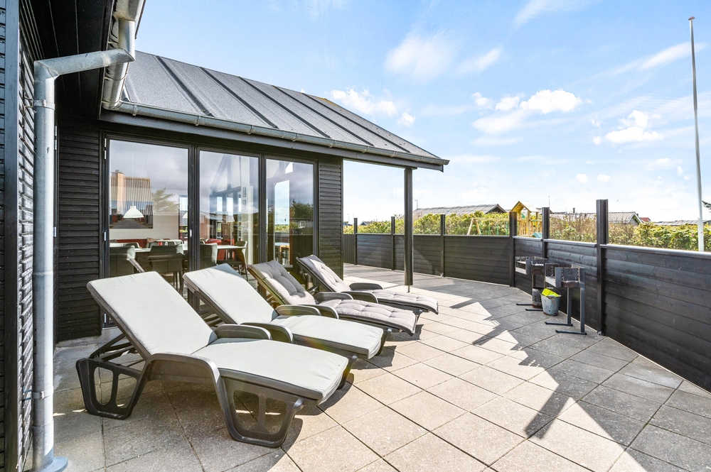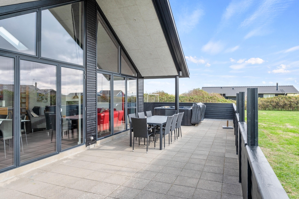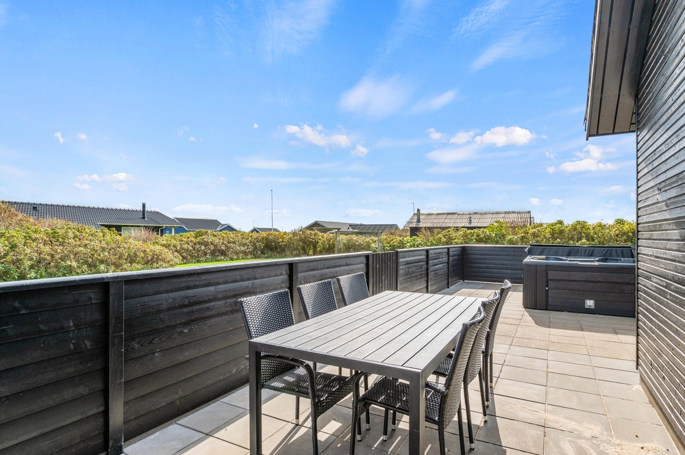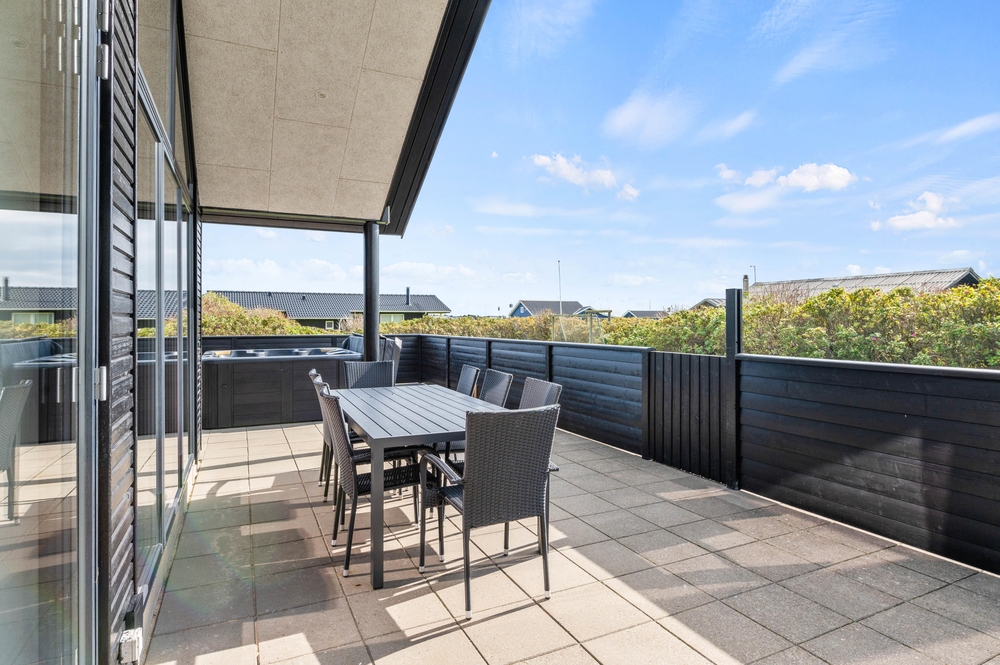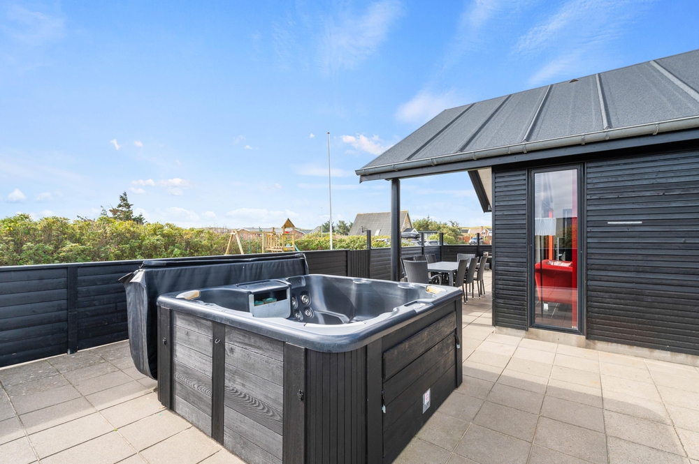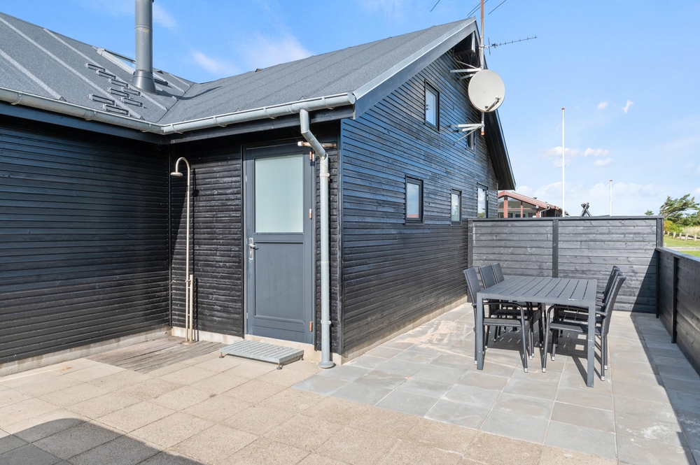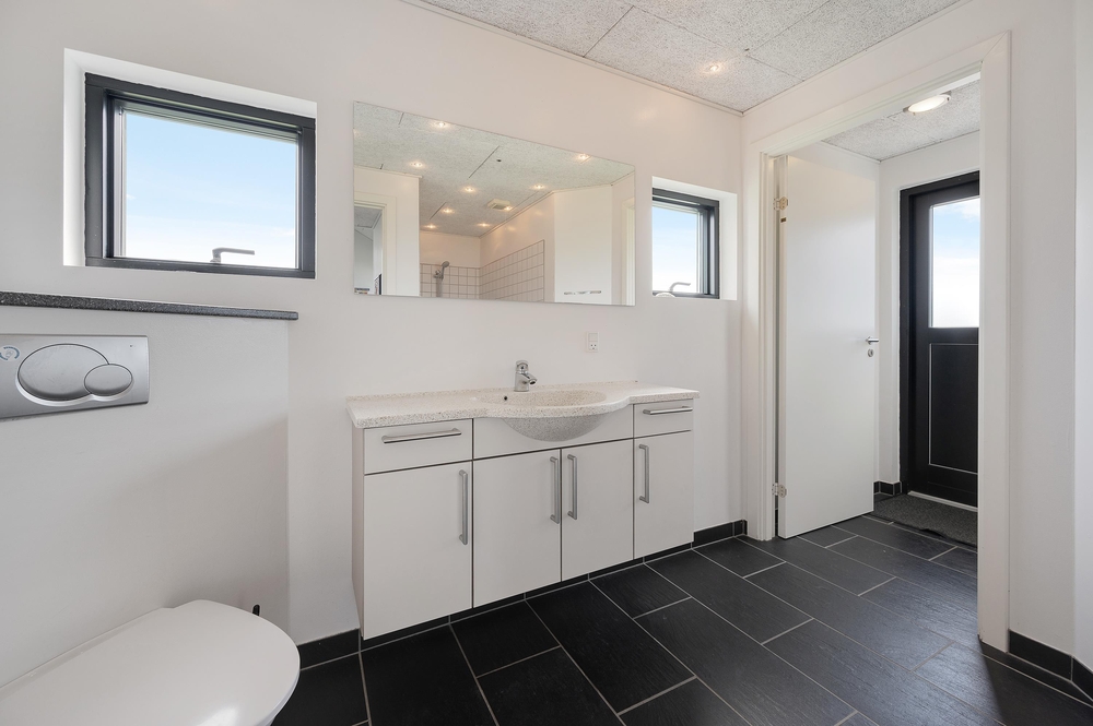 I sommerhuset finder I to store badeværelser, der ligesom resten af sommerhuset har gulvvarme, så I ikke behøver at bekymre jer om kolde fusser om morgenener. For jeres velvære og så I kan nyde jeres ferie endnu mere, er huset udstyret med flere forskellige wellness muligheder. Der er en flot og stor udespa placeret på den sydøstlige terrasse, her er der rigelig plads til fire personer. Den er brugbar hele året rundt og en sådan terrasse finder man ikke ved mange huse. Der er også en lækker sauna, der sikrer at I for alvor kan blive varmet igennem og nyde noget afslapning.