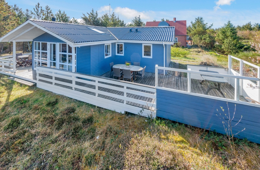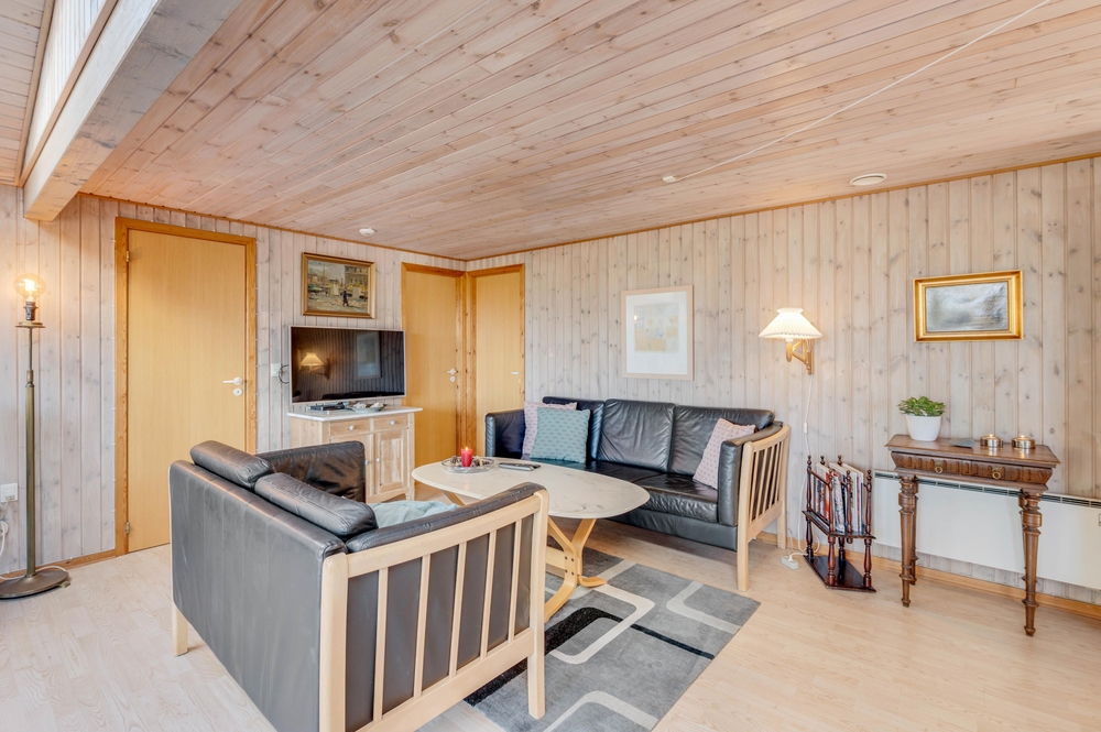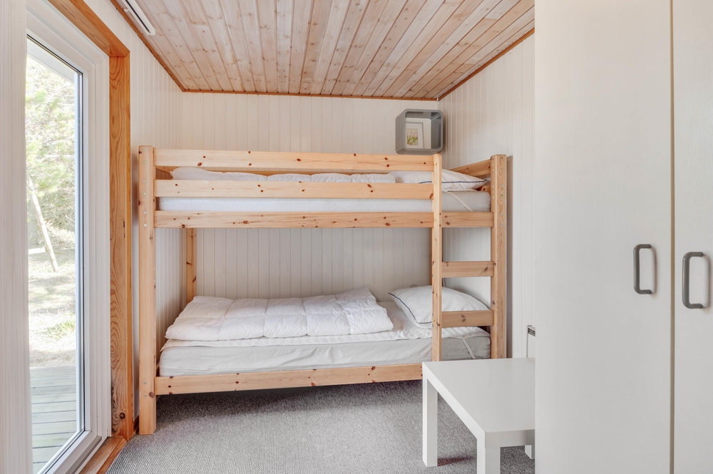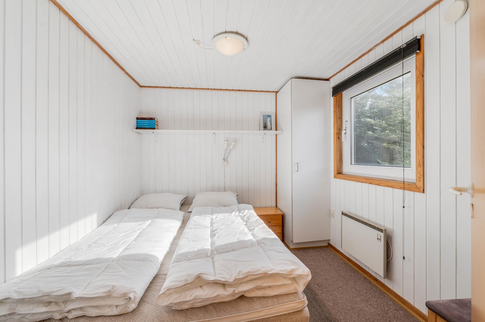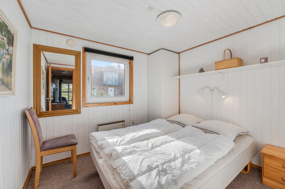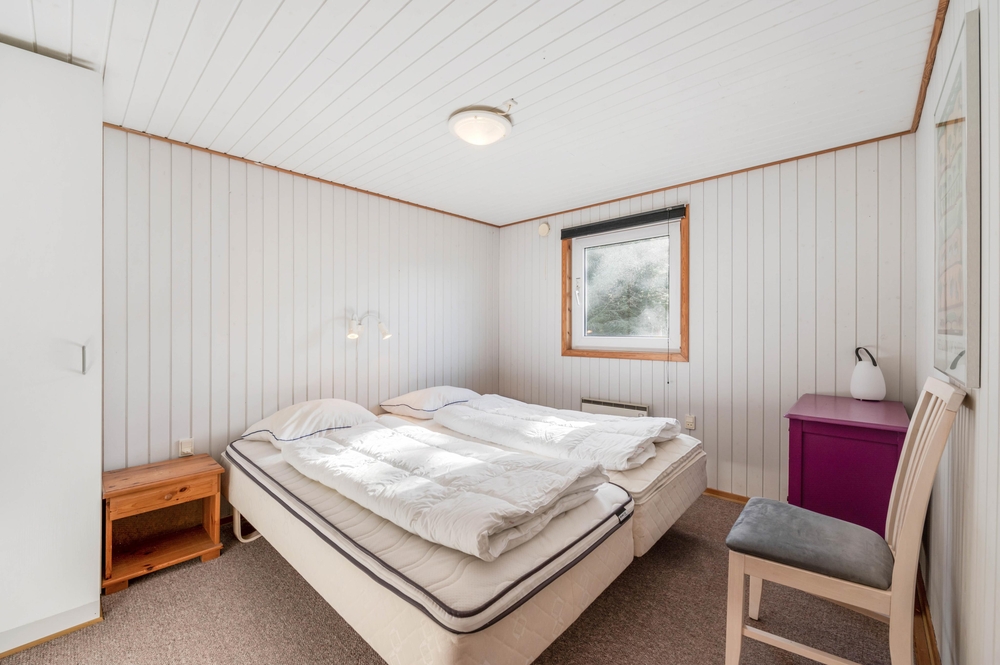Når I træder ind i dette feriehus, bliver I straks mødt med en klassisk, hyggelig feriehusstil. Feriehuset fordeler sig på 4 soverum, hvoraf 3 af værelserne er udstyret med dobbeltsenge, og det sidste værelse er perfekt som børneværelse, da det har en køjeseng.
