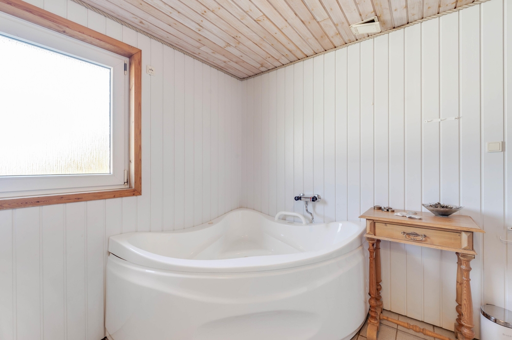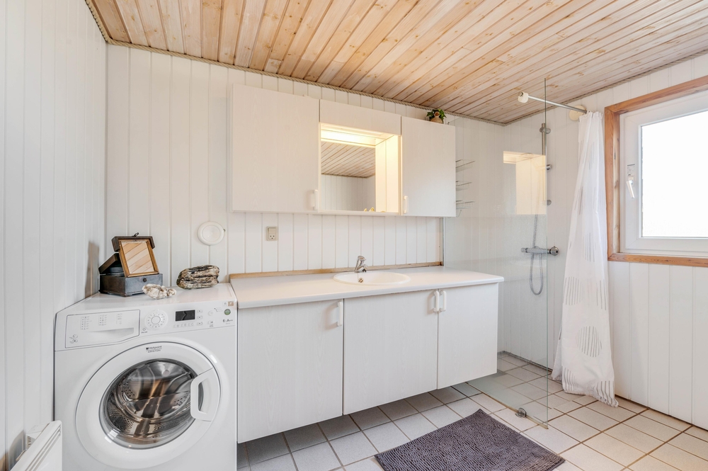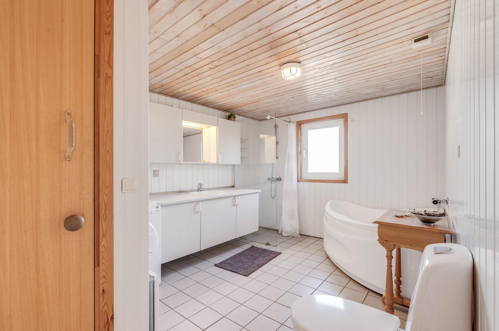 Derudover sørger både varmepumpen og gulvvarmen også for et behageligt indeklima, som også er energibesparende. Også badeværelset har gulvvarme, så I ikke får kolde fødder. Når I ønsker at blive opvarmet efter en lang og oplevelsesrig dag i den vestjyske natur, kan I sidde og slappe af i saunaen eller i spaen.