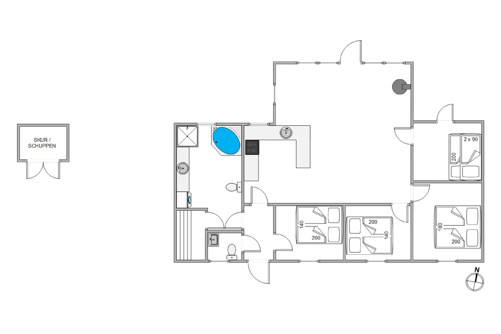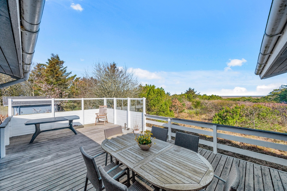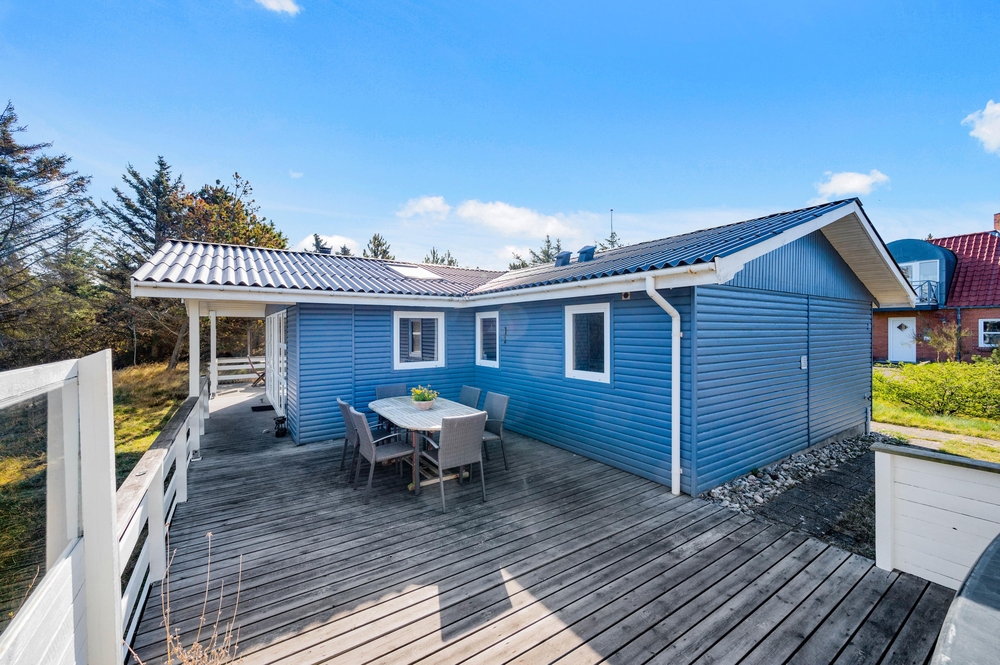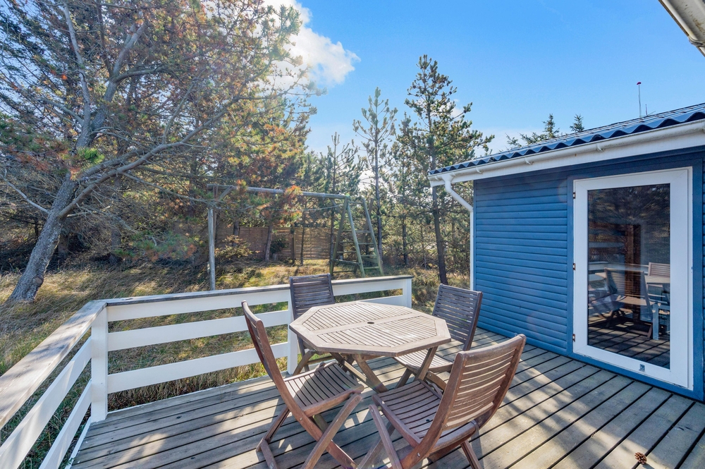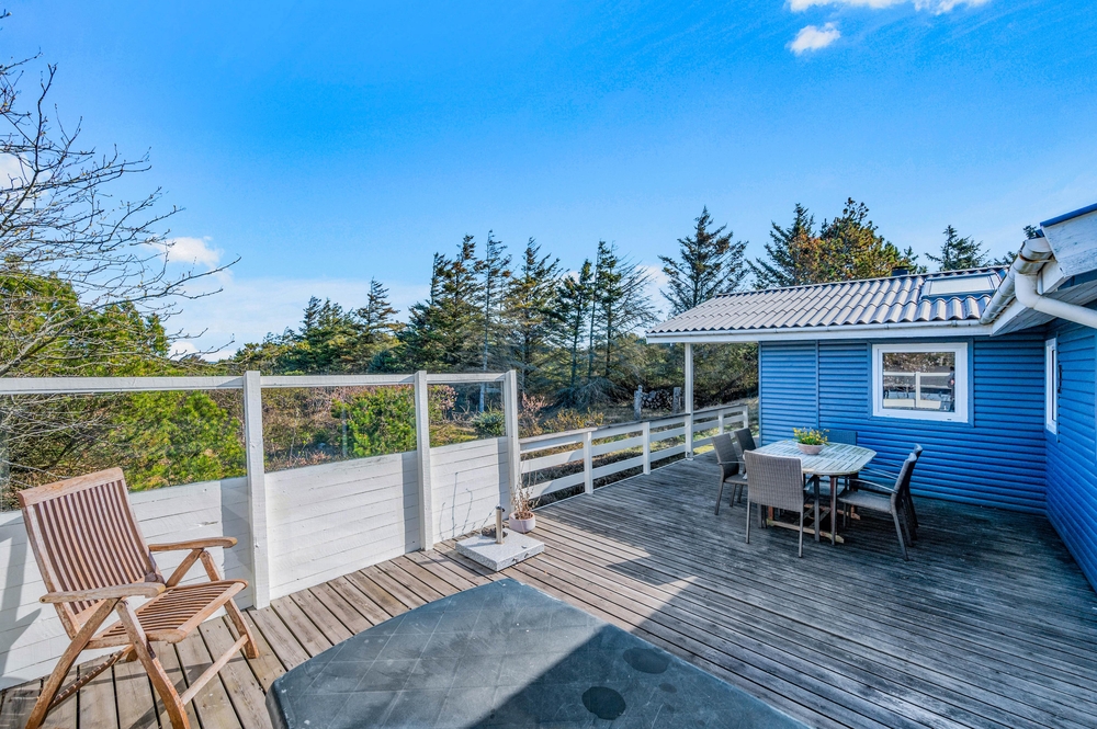 Feriehuset på Hagevej 99 er beliggende på en 940 m² stor naturgrund, hvor både børn og hunde har masser af plads til at lege og boltre sig frit. Den store, solrige træterrasse inviterer til afslapning og hyggelige stunder i det fri. Her kan I tilberede lækker grillmad under åben himmel. Sæt jer godt til rette, slap af med et køligt glas vin, og lad roen sænke sig, mens I nyder den naturskønne udsigt og de rolige omgivelser.
