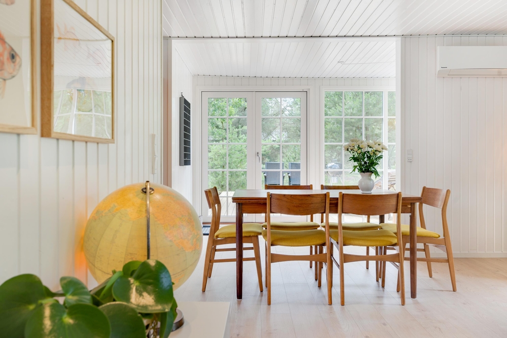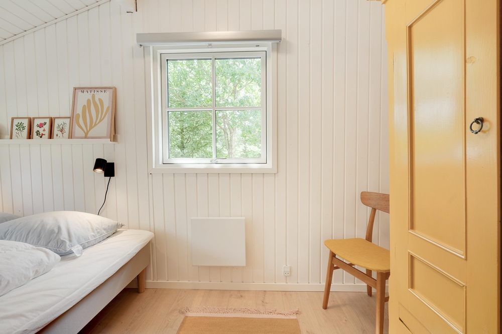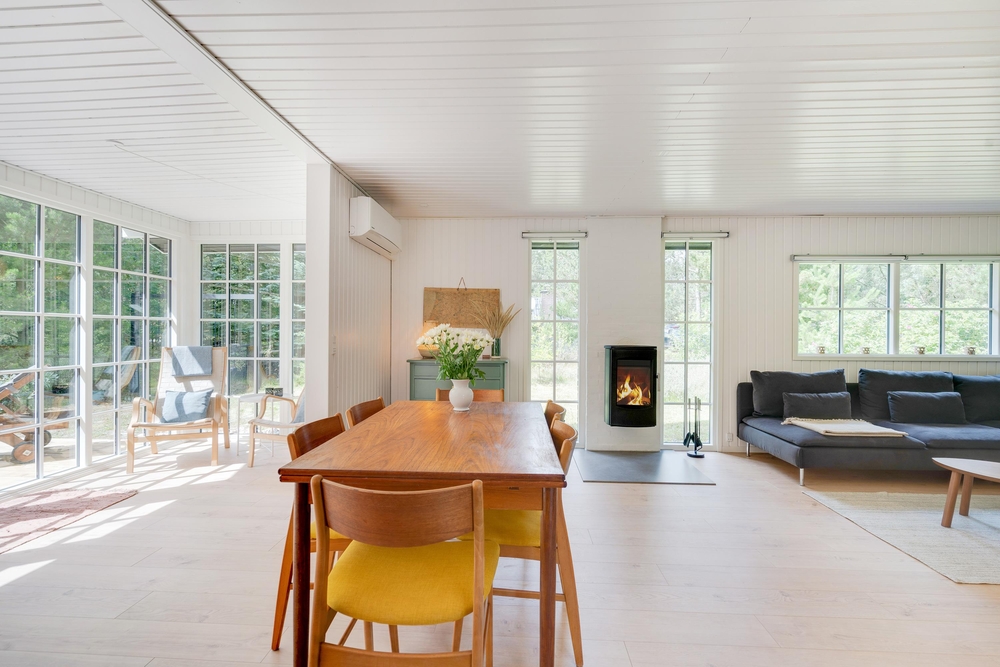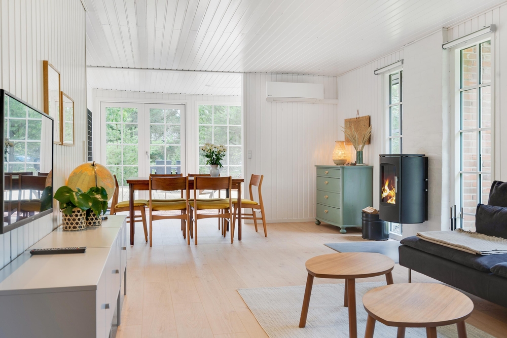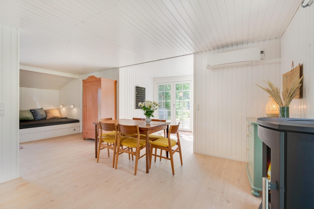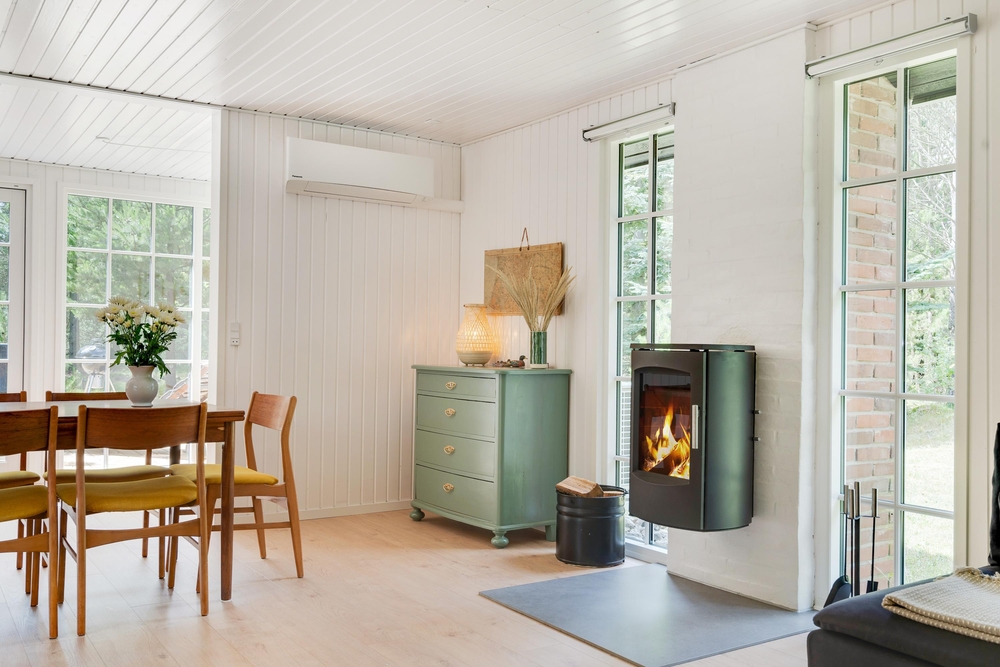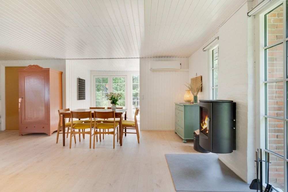 I huset er installeret en energibesparende luft-til-luft varmepumpe.
