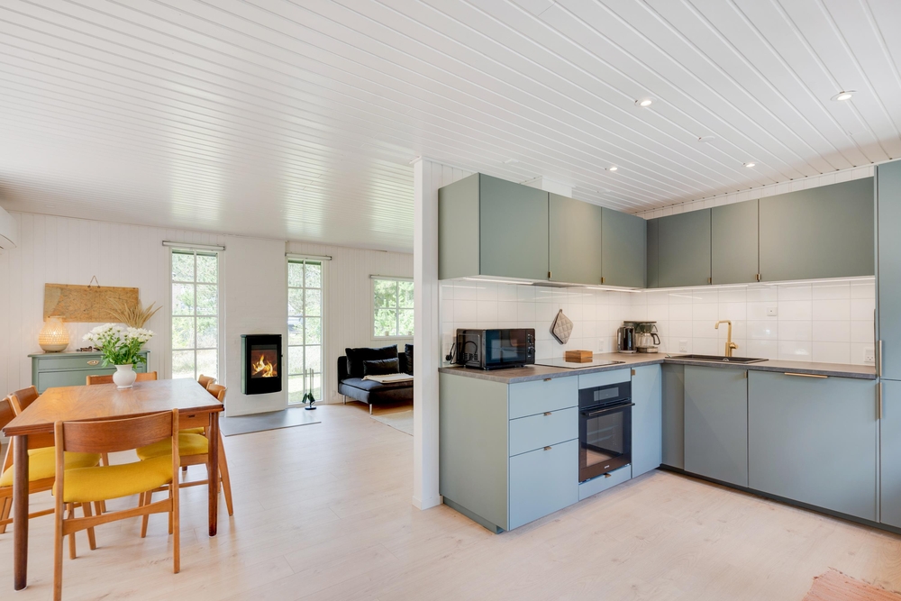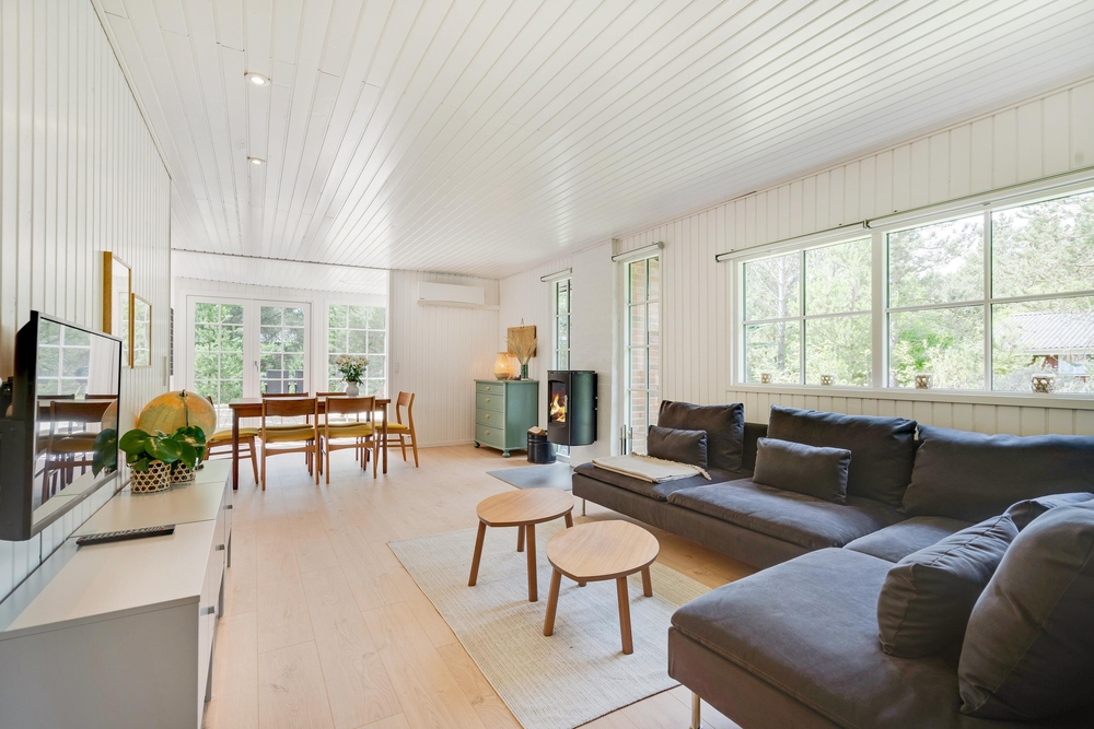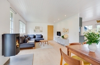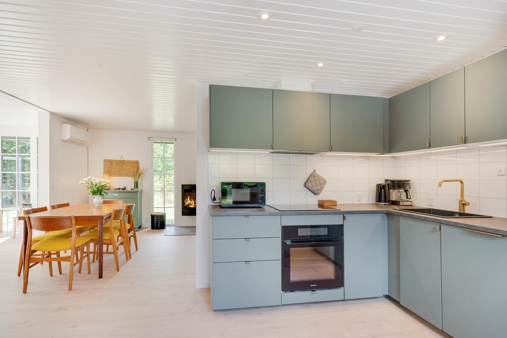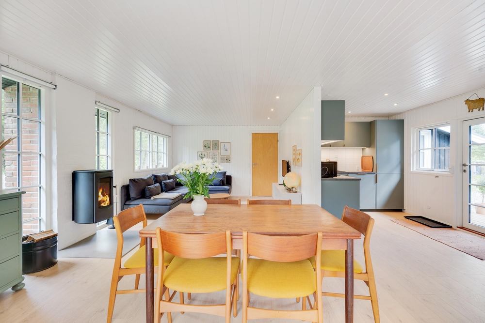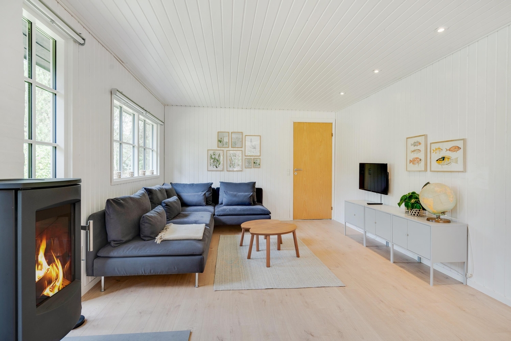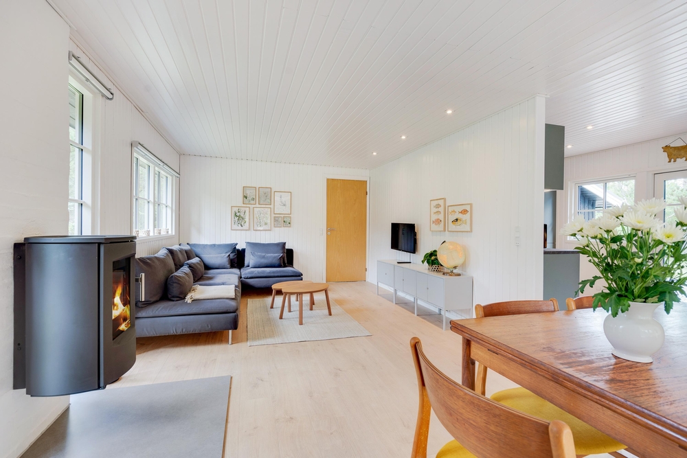 I huset er der masser af plads til familiehygge. Står fælles madlavning på dagsorden, så danner det godt udstyret køkken gode rammer. Her står bl.a. en opvaskemaskine og et kombineret køleskab med fryser til rådighed. Det hjemmelavede måltid kan bagefter nydes ved det store spisebord, hvor der også kan spilles kort bagefter. Den hyggelige sofagruppe ved siden af brændeovnen giver gode muligheder for film og hygge.