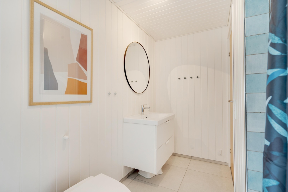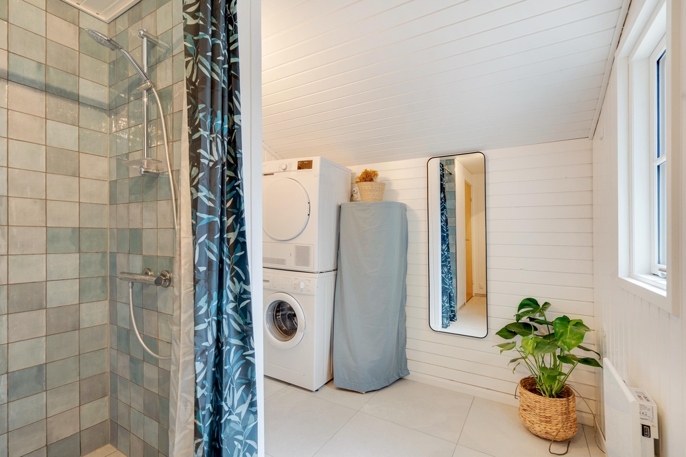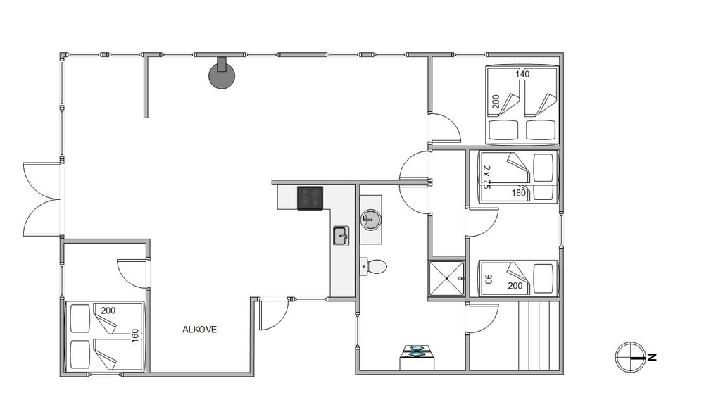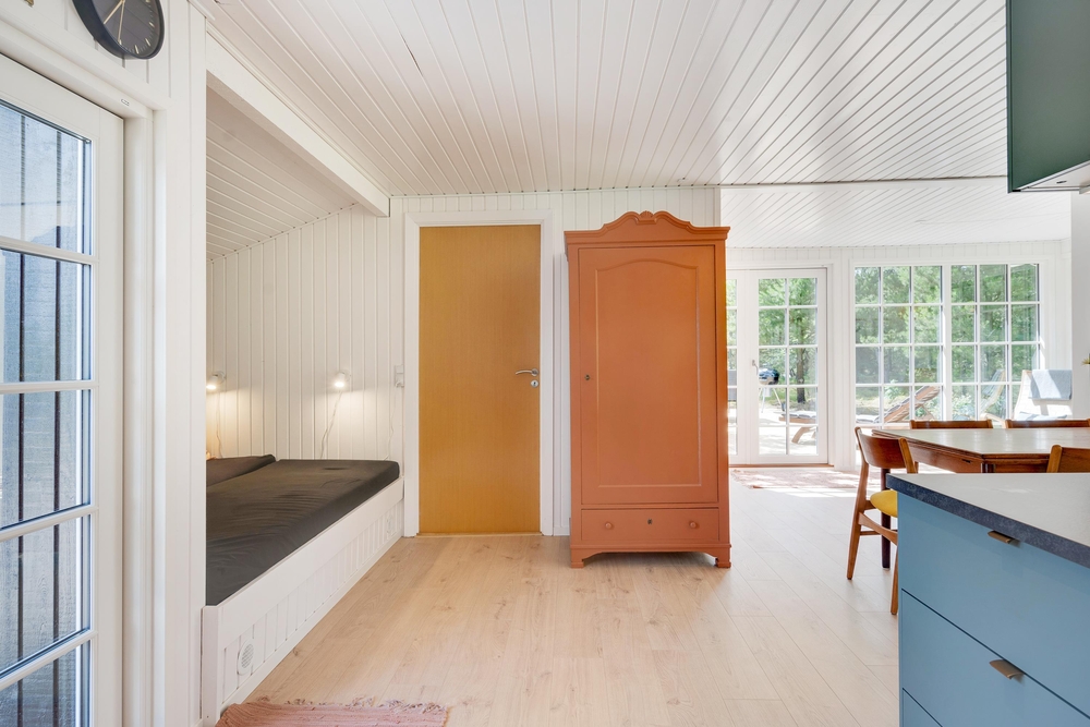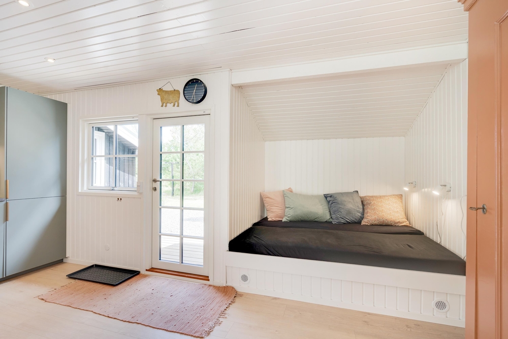 Der er tre soveværelse med gode skabsrum. I to af værelserne har I dobbeltsenge, det tredje værelse er indrettet med en enkeltseng samt en køjeseng. Dertil er der en alkove i alrummet, som egner sig til læsehygge eller en lille ?morfar? efter frokosten. I badeværelset står både vaskemaskine og tørretumbler til jeres rådighed og herfra er der også tilgang til husets sauna.