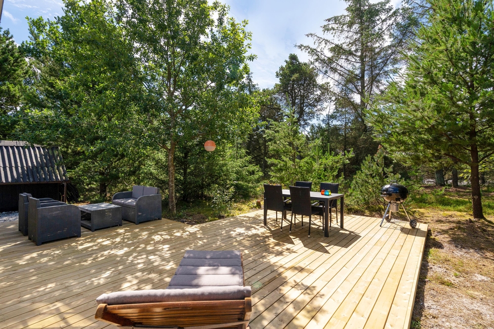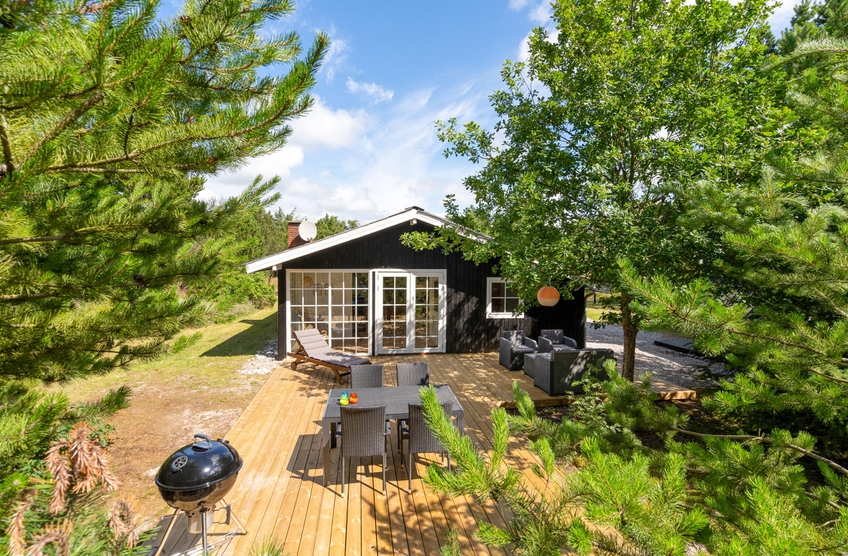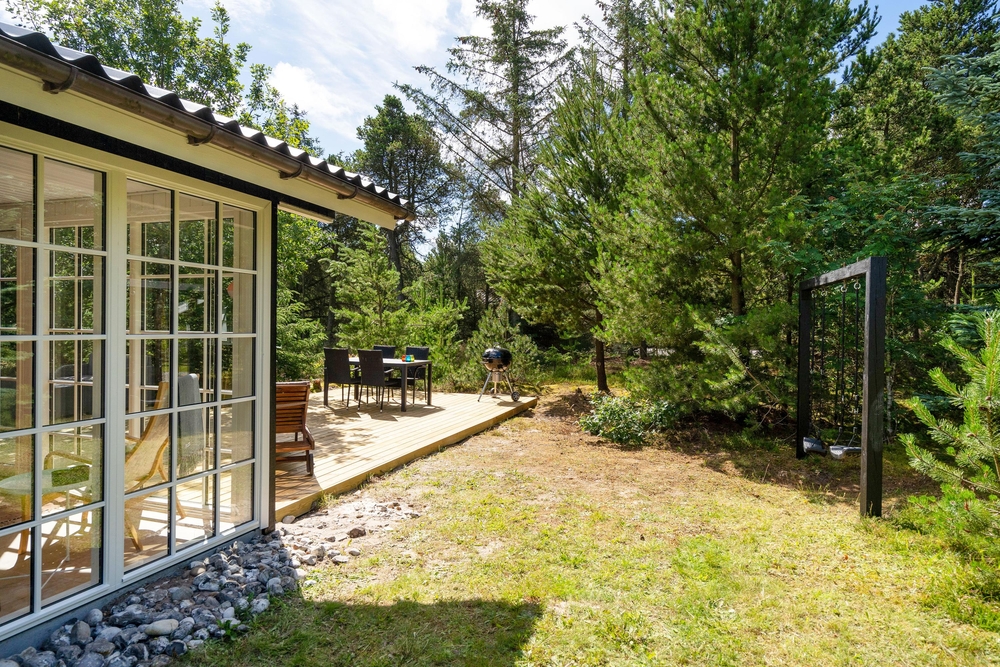 Lige meget årstiden byder huset på det perfekte opholdssted. Her kan I lade batterierne op i alt slags vejr. Når solen skinner kan I nyde maden sammen helt ugeneret på husets afskærmede terrasse. Her står både liggestole, et hyggeligt lounge sæt, havemøbler og en grill klar til jer. Mens de voksne slapper af, kan børnene lege på gyngen. Feriehuset må rumme op til 6 personer, så det er perfekt til en familie, som gerne vil holde en hyggelig ferie sammen ved Vestkysten. Sommerhuset har egen ladeboks, så I kan oplade jeres el-bil direkte på adressen.