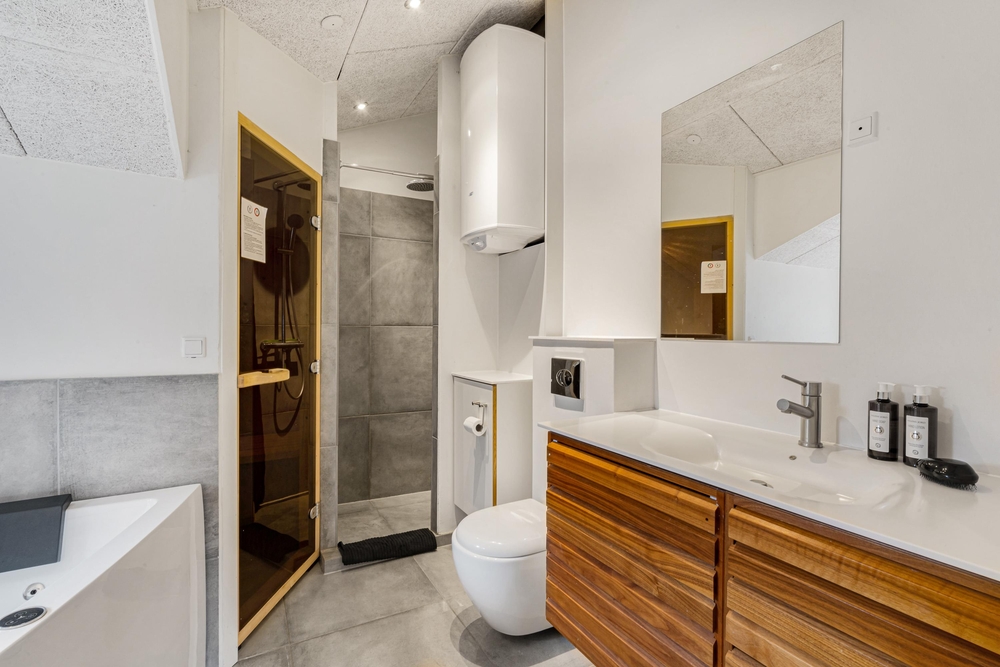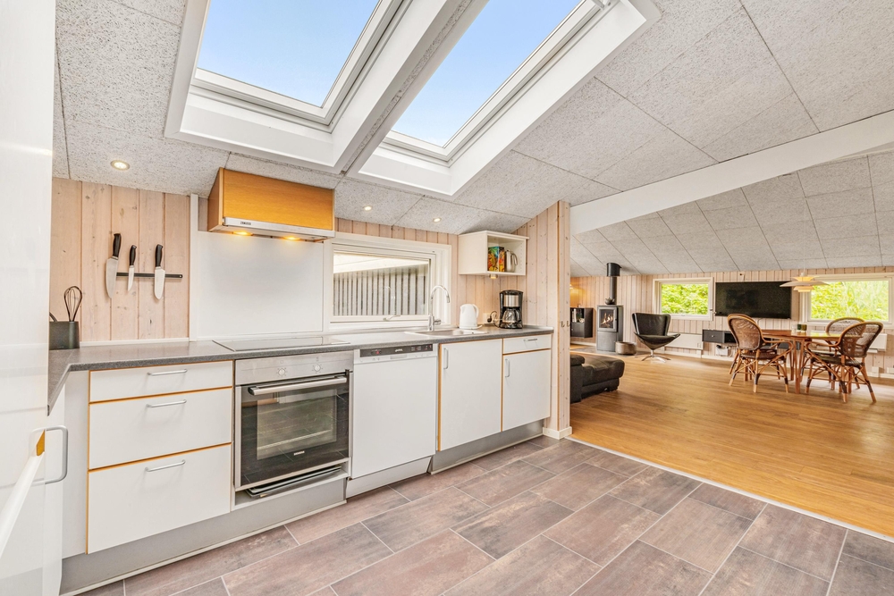 Sommerhuset rummer flere af hverdagens hjælpere ? både opvaskemaskine og vaskemaskine ?, så I ikke skal bekymre jer om oprydning og huslige pligter. En hurtig og stabil internetforbindelse sørger for, at I kan være online på ferien, og en energivenlig varmepumpe holder forbrugsregningen nede.