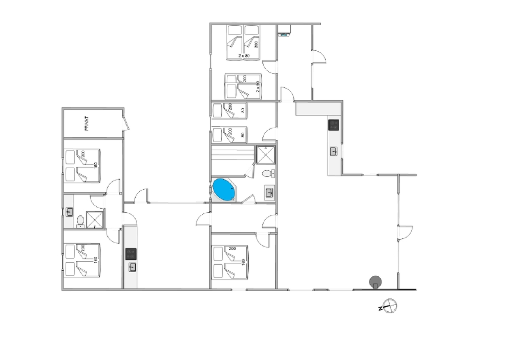 Det rummelige sommerhus har i 2021 gennemgået en renovering, og de indbydende omgivelser vil hurtigt få enhver feriegæst til at føle sig hjemme. I får hele 187 kvadratmeter feriehus at brede jer ud på, og sommerhuset er sågar indrettet med 2 køkkener.