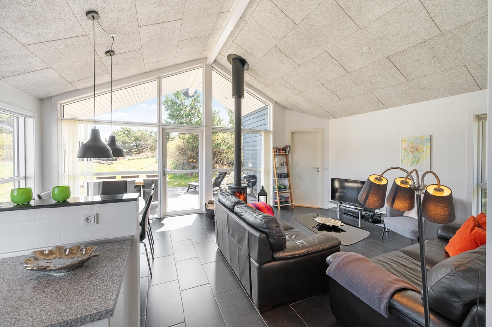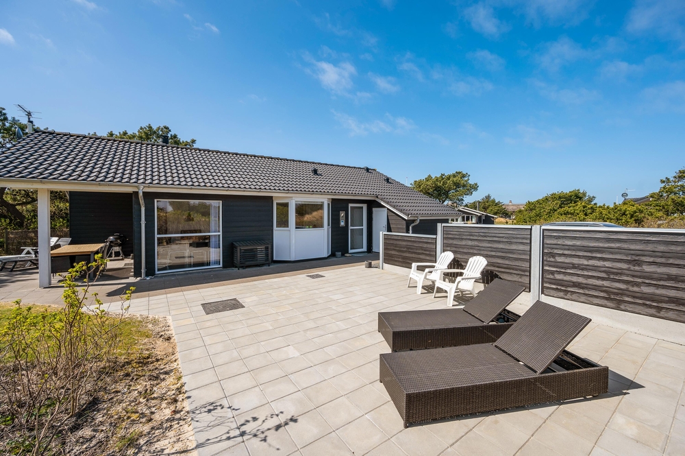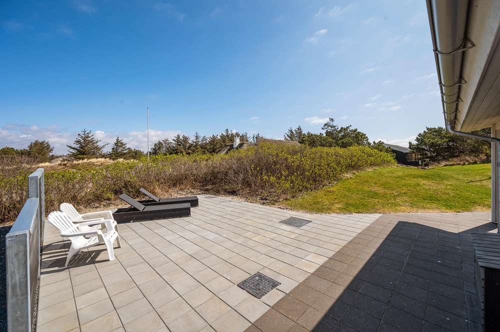 Grunden omkring huset er flot, velplejet og med gode terrasser, så I kan opholde jer udendørs hele dagen på solrige dage. Vesterhavet er kun 400 m. fra sommerhuset, ligesom Søndervig centrum også er inden for gåafstand.