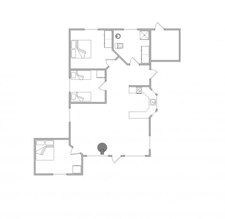 Hemsen kan tilgås fra husets køkken-alrum, der er sommerhusets hjerte. Her er højt til loftet, og dejlige, praktiske og store klinker, der bare indbyder til masser af velvære og afslapning. Sommerhuset er på i alt 80 kvadratmeter, og kan byde op til seks gæster velkommen. Alle seks sovepladser er fordelt på tre soveværelser, der alle er med dobbeltseng for at tilgodese jeres komfort.