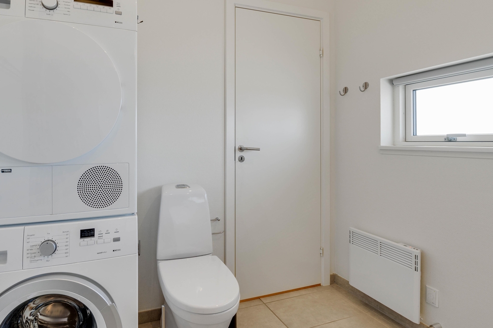 Om aftenen indbyder spisebordet til hygge og kogeøen til fælles madlavning, imens I lytter til tonerne fra Bluetooth højtaleren, som også er at finde i feriehuset. I behøver ikke spekulere på, hvem der tager opvasken ? det klarer opvaskeren. Derudover findes også både vaskemaskine og tørretumbler i feriehuset på Harbo Stages Vej 3. Dermed behøver I kun at tænke på at finde jeres yndlingstøj frem til ferien.
