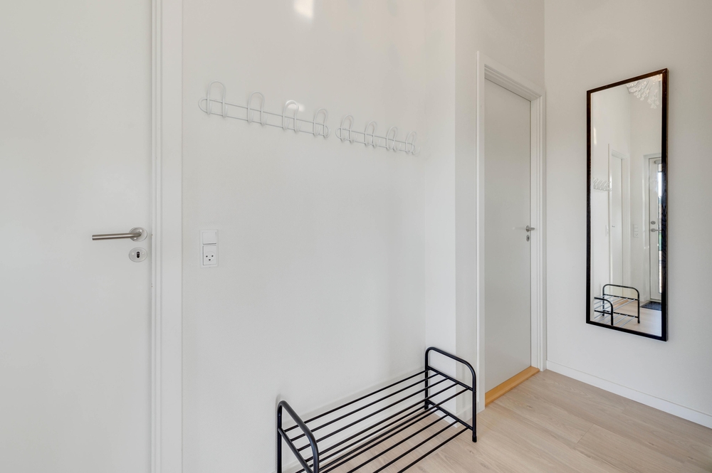 På Harbo Stages Vej 3 vil I helt sikkert lynhurtigt føle jer til rette. Allerede ved indgangen til feriehuset bliver I mødt af en lys og moderne indretning med højt til loftet og en indretningsstil der viser sig som en rød tråd gennem hele huset.