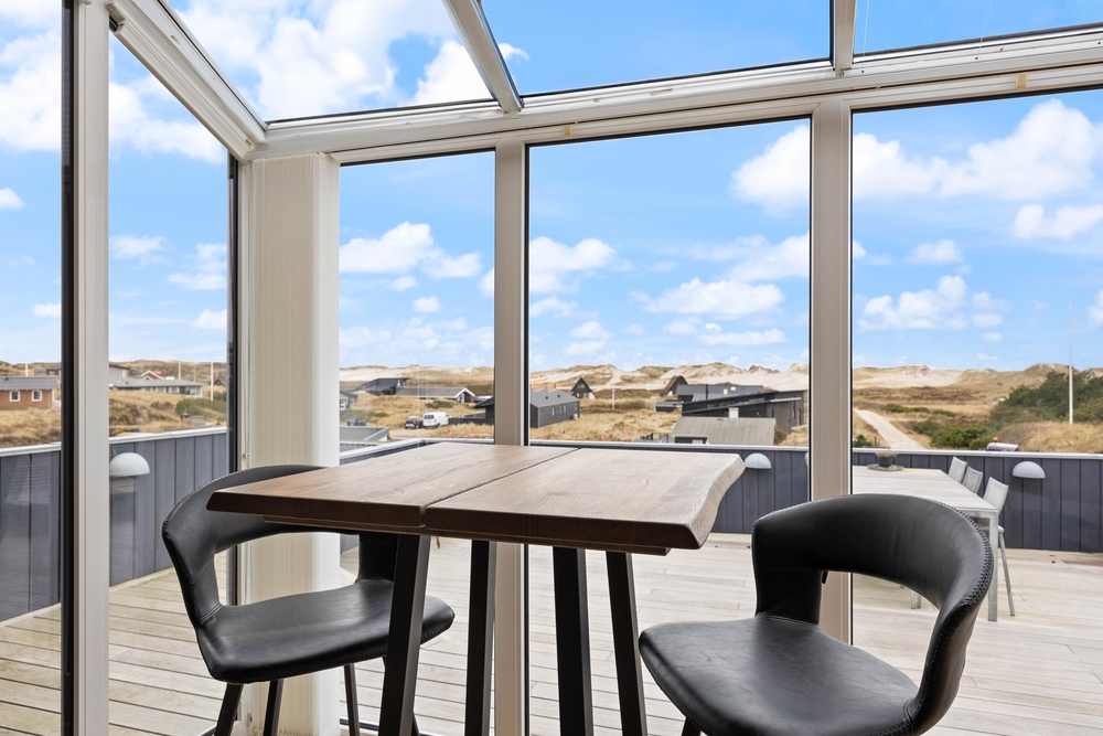 Når I træder ind i feriehuset, bliver I mødt af et hyggeligt sommerhus, der giver jer masser af naturligt lys takket være de mange vinduer. Det store opholdsrum, som kombinerer køkken, stue og spiseplads, er det perfekte sted til at lave mad sammen, tilbringe tid sammen og spille spil. Det store vinduesparti i stuen giver jer en fantastisk panoramaudsigt over de skønne omgivelser i Søndervig. Brændeovnen i stuen giver en ekstra dosis hygge og sørger for ægte sommerhusstemning.