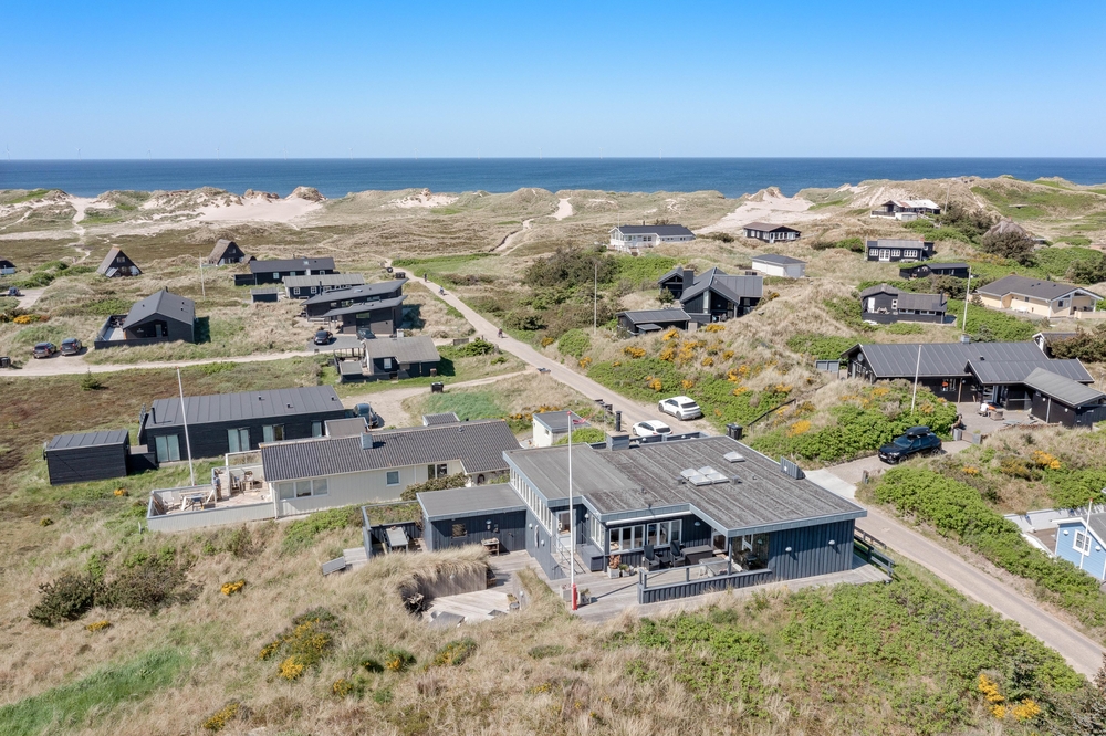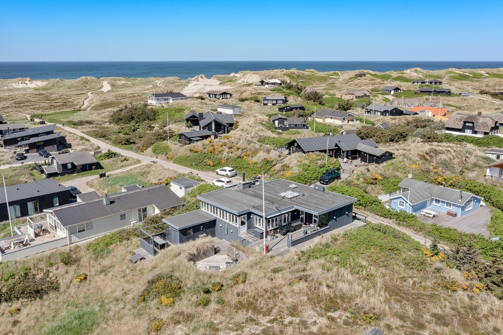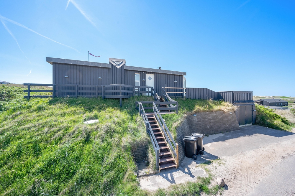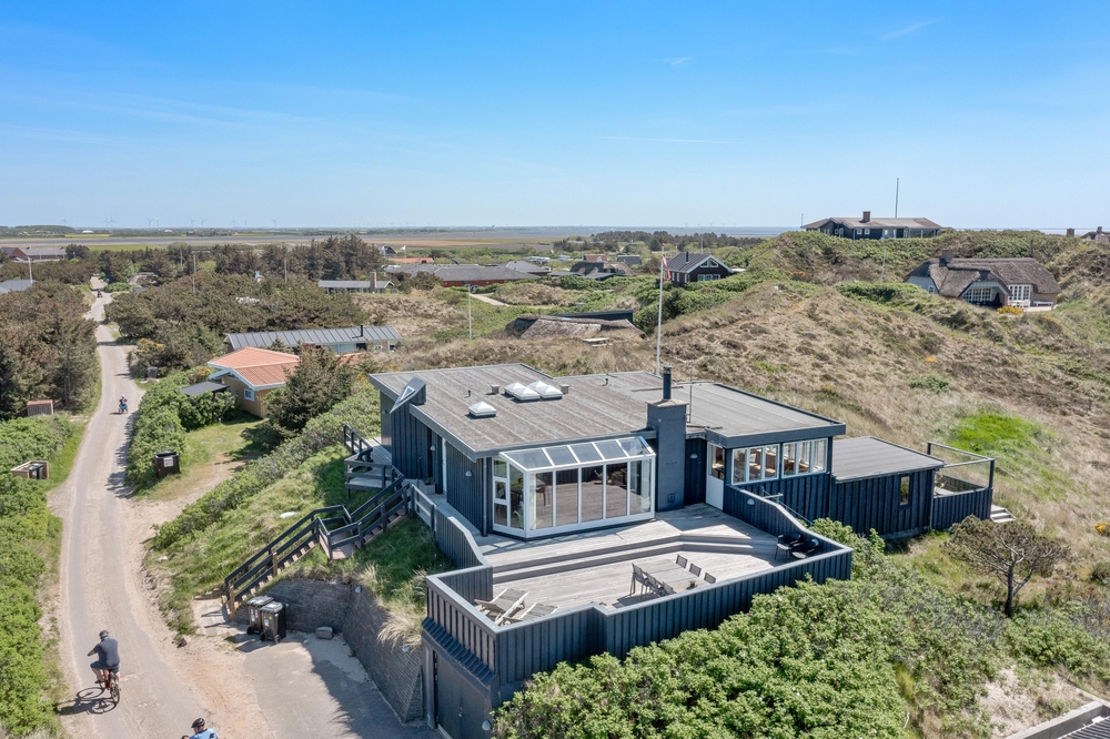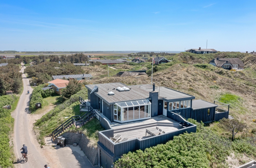 Feriehuset på Harbo Stages Vej 37 i Søndervig ligger på en klit- og naturgrund på ca. 1275 m2 og byder på mange forskellige terrasser, hvoraf nogle er overdækkede, åbne og afskærmede, så alle kan finde deres yndlingsplads. Da feriehuset ligger lidt højt, har man fra terrassen en fantastisk panoramaudsigt over ferieområdet i Søndervig. Der er en garage under feriehuset, hvor I kan parkere jeres bil under ferien.