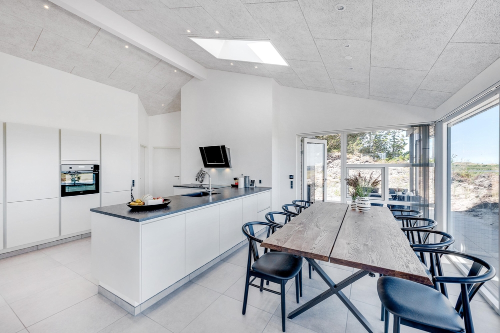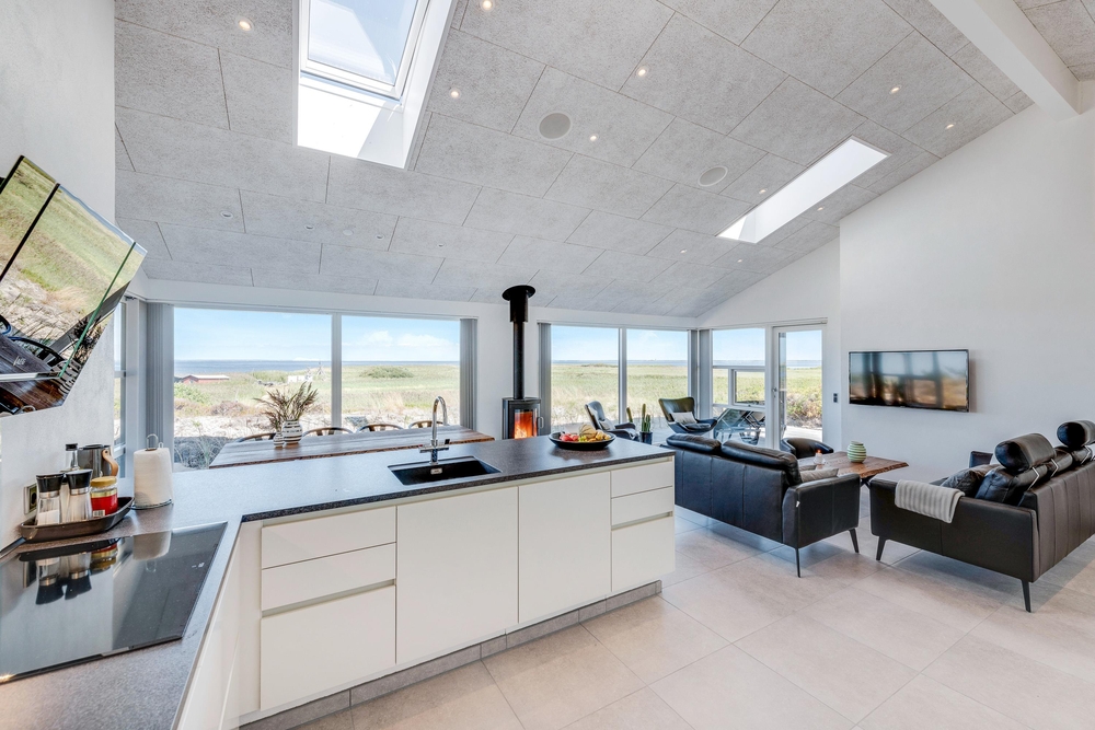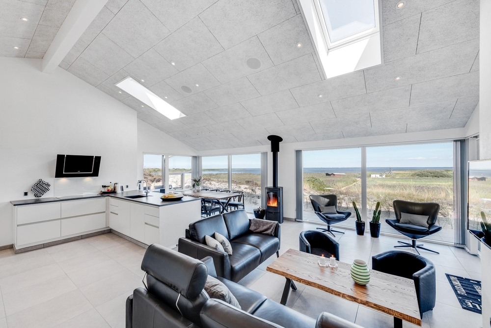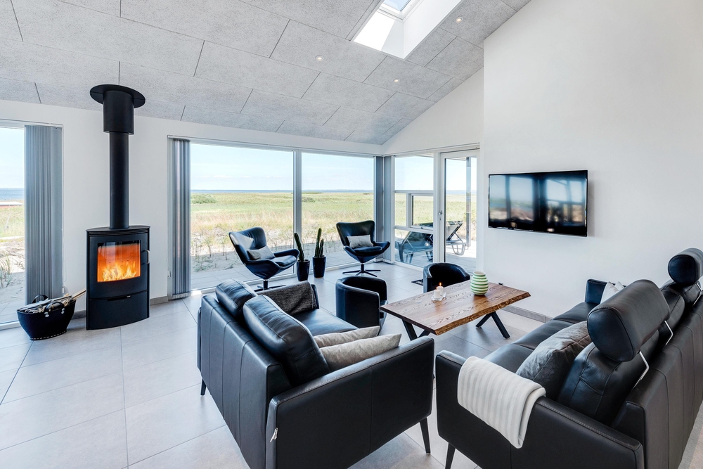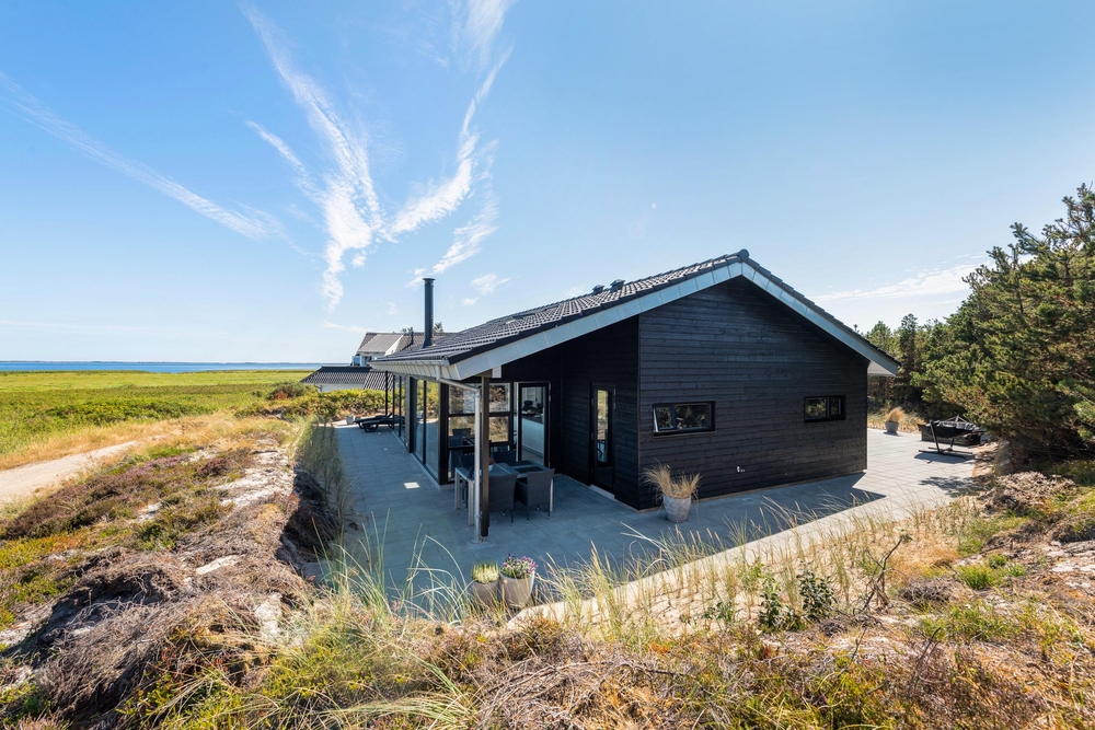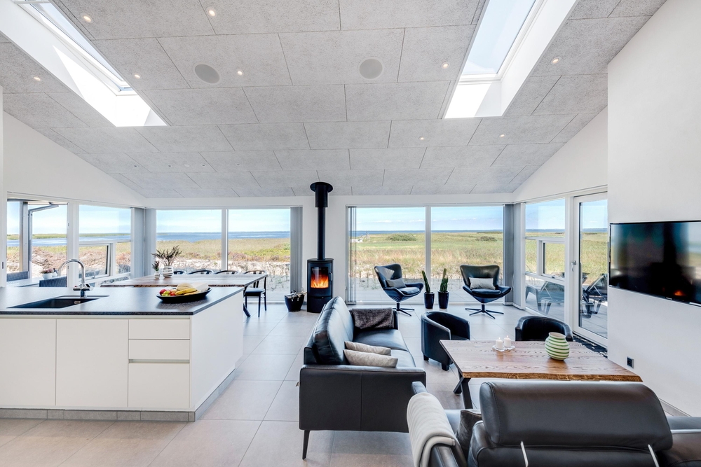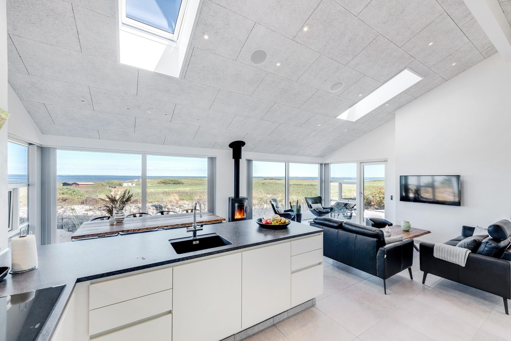 Dette lækre feriehus i Skodbjerge fortjener i den grad alle sine fem stjerner. Her er alt i top, lige fra beliggenheden til den stilfulde indretning med moderne interiør, skarpe kontraster og masser af lys og rummelighed.