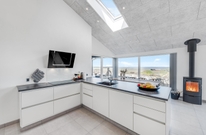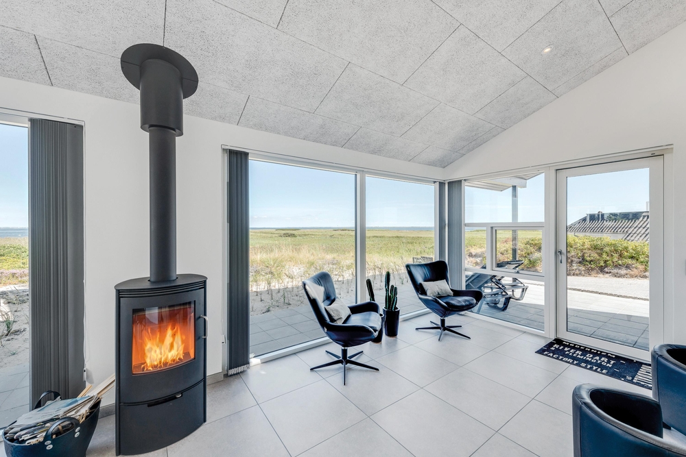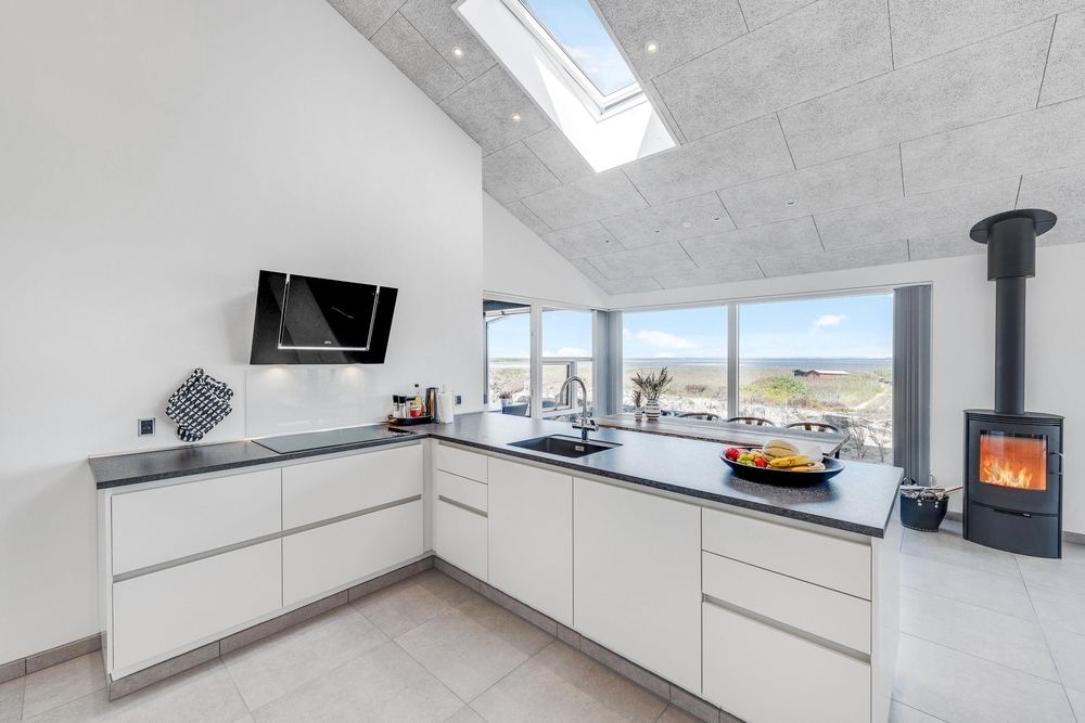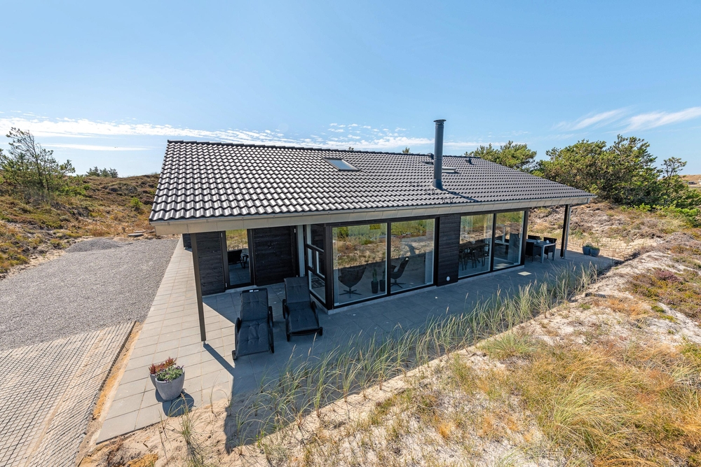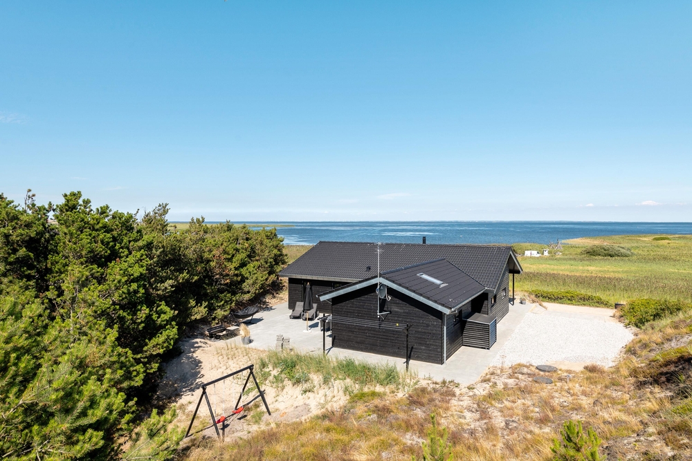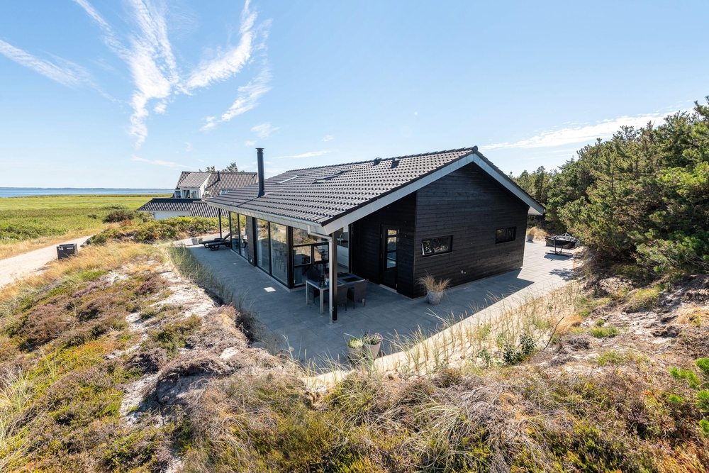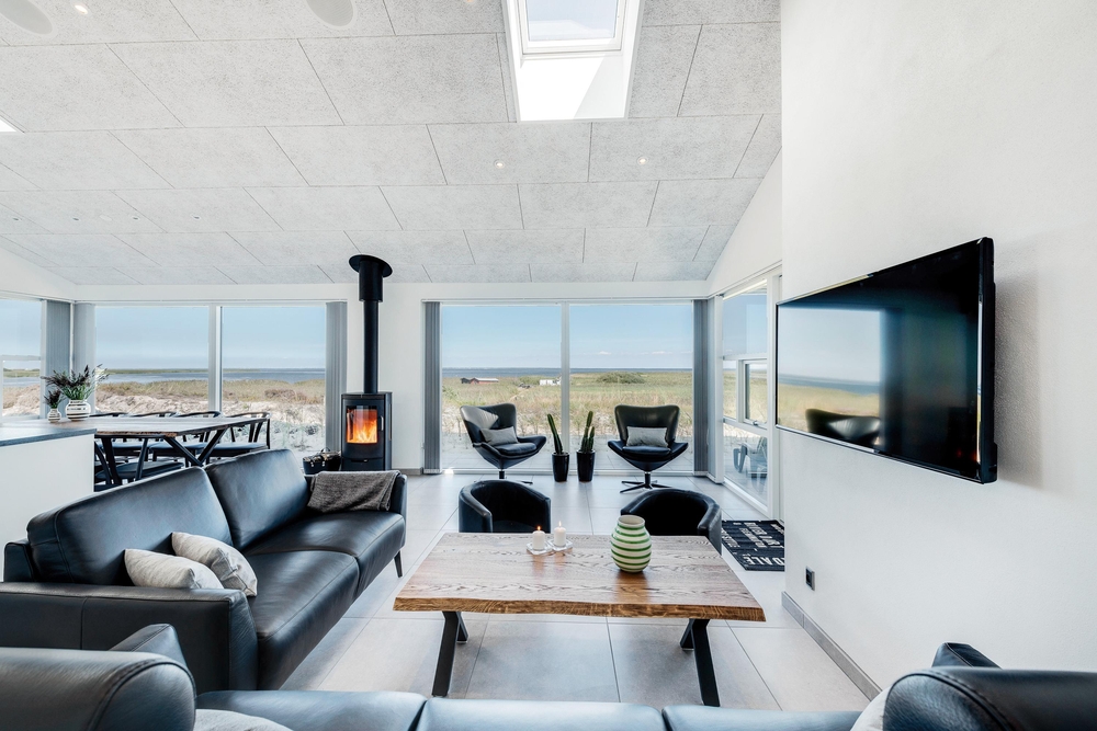 Dette lækre feriehus i Skodbjerge fortjener i den grad alle sine fem stjerner. Her er alt i top, lige fra beliggenheden til den stilfulde indretning med moderne interiør, skarpe kontraster og masser af lys og rummelighed.