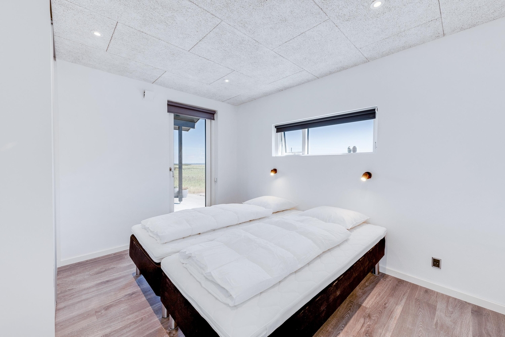 Selv om I bor på fjordsiden, er der kun 850 meter til Vesterhavet, og få minutters kørsel fra huset ligger den lokale købmand i Bjerregård, hvor I hver dag kan hente nybagte rundstykker til morgenbordet og røde bøffer til grillen.
