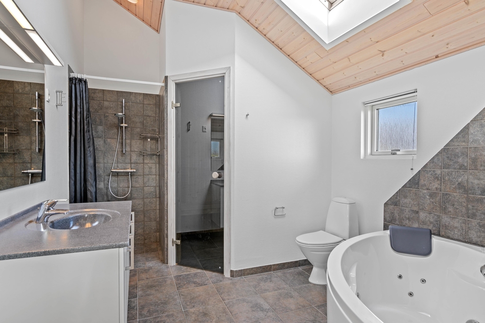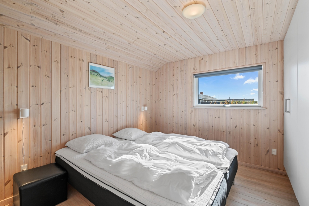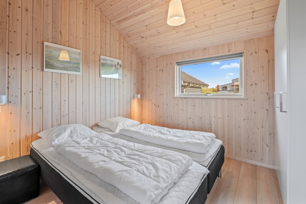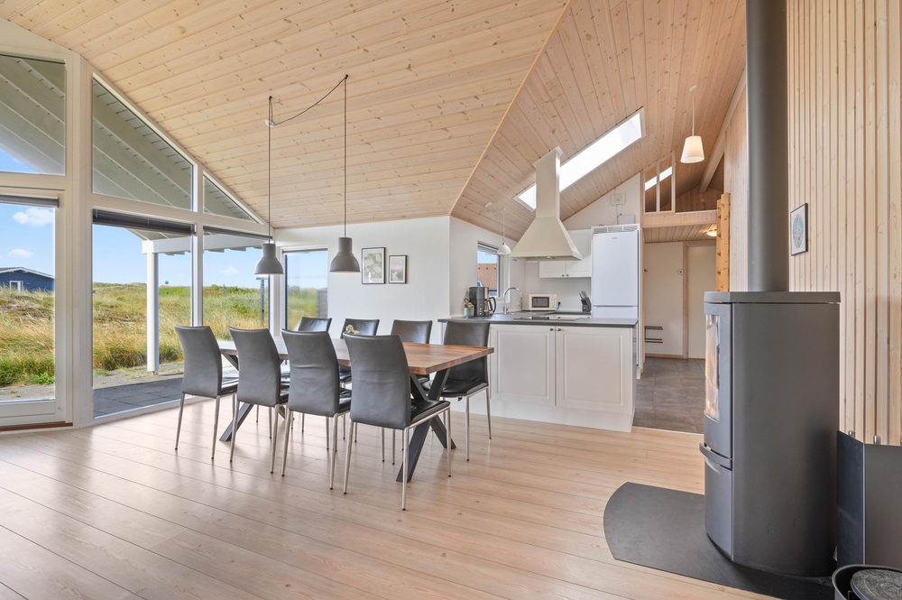 Et førsteklasses arkitekttegnet træhus med en skøn og flot indretning med gode detaljer. Huset er til 8 personer, fordelt på 3 lyse og dejlige dobbeltværelser og en hems med 2 enkeltsenge, lige noget for børnene. Et flot stort vindues parti lader lyset strømme ind i det centrale område i huset, som rummer stuen, spisestuen og køkkenet. Herfra er der adgang til et lækkert aktivitetsrum med billard og pool, her kan der hygges og konkurreres på livet løs. Det store badeværelse indbyder til ren forkælelse, hop i spaen og mærk hvordan boblerne får din krop til at slappe af og slut så af med lidt tid i saunaen. Tænd for brændeovnen og lad varmen strømme ud i rummet.