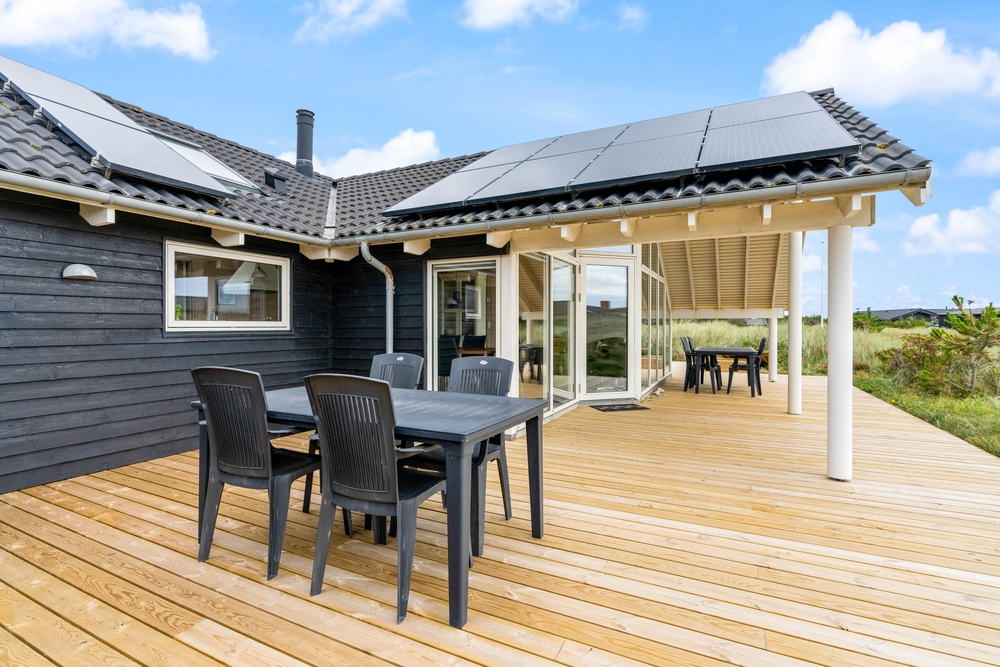 Et førsteklasses arkitekttegnet sommerhus, hvor der er tænkt på detaljerne. Huset har en skøn og fredelig beliggenhed på en stor naturgrund kun få hundrede meter fra stranden. Der er stort aktivitetsrum med bl.a. billard.